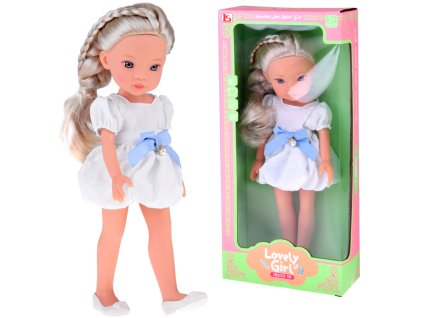 Lovely Girl Simpatična punčka v beli obleki z modro pentljo 33 cm
