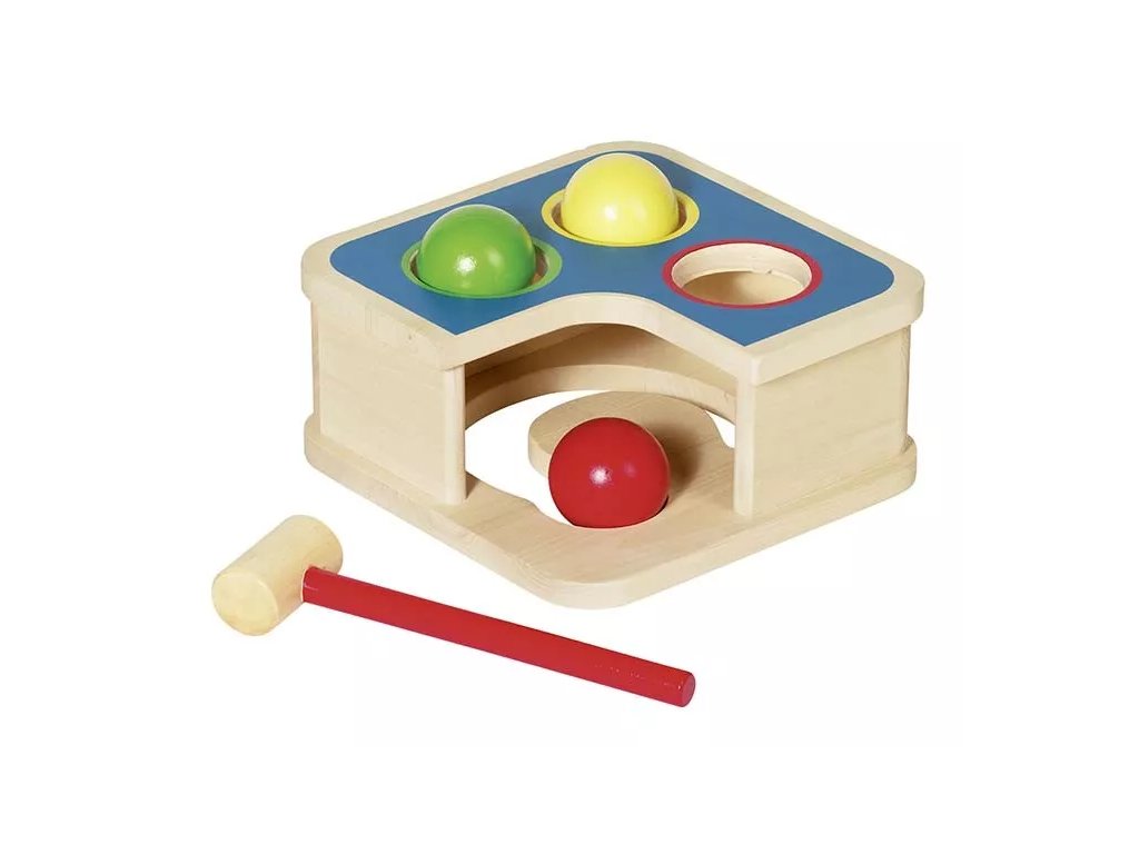 Zabijalnik, kroglice in kladivo so izdelani iz lesa. Uporabljene barve in laki so neškodljivi.