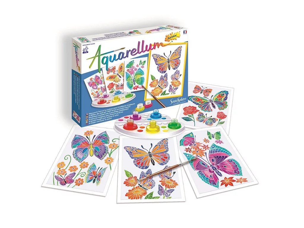 Pripravite se na čarobno doživetje pri ustvarjanju čudovitih metuljev in cvetočih rož s setom akvarelov francoske znamke SentoSphere. Set je zasnovan tako, da je delo z barvami enostavno in dostopno otrokom.