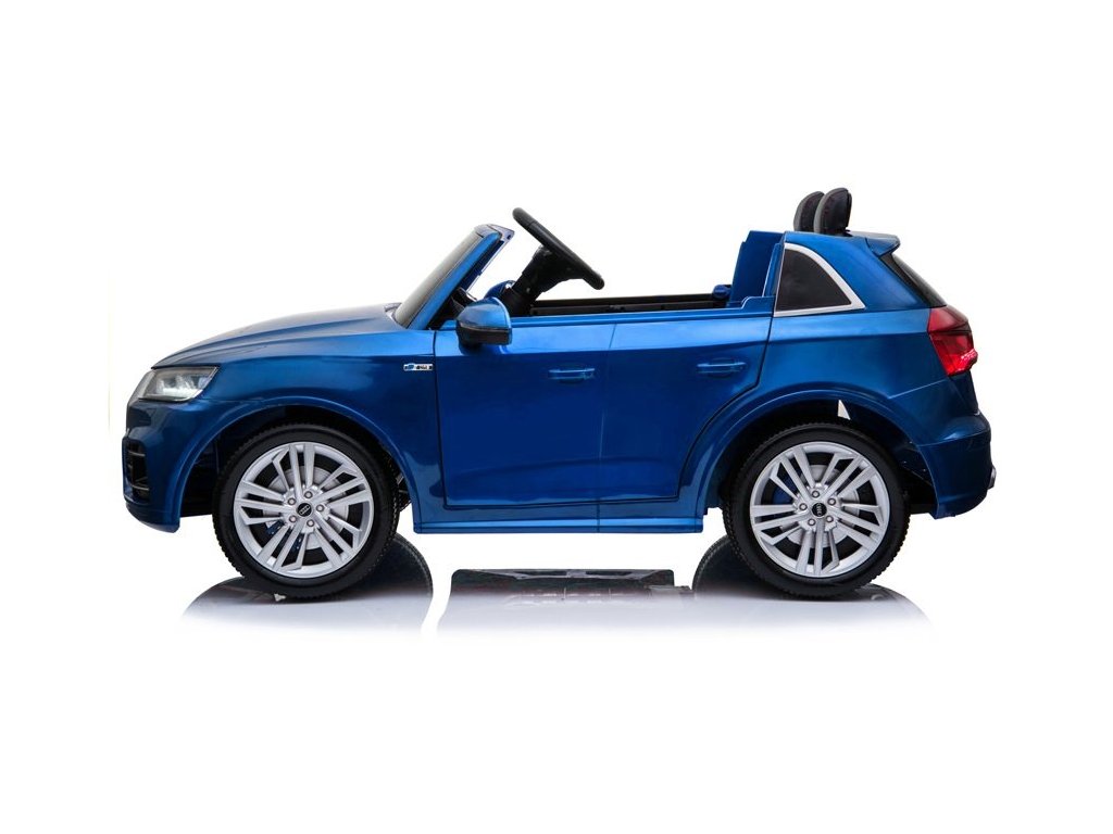Otroški električni avto Avto na akumulator Audi Q5 4x4 LCD lakirana modra, ki pritegne pozornost vseh mimoidočih. Audi Q5 je velik, močan in izdelan iz najkakovostnejše plastike. Vozilo se lahko upravlja z daljinskim upravljalnikom ali pa ga otrok vozi sam. Avto ima sedež iz eko usnja z odpiranjem vrat in za varnost otroka je na sedežu nameščen varnostni pas. Električni avto je opremljen s svetlečimi sprednjimi in zadnjimi lučmi, glasbeno ploščo in realističnimi zvoki.
