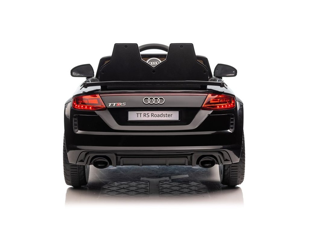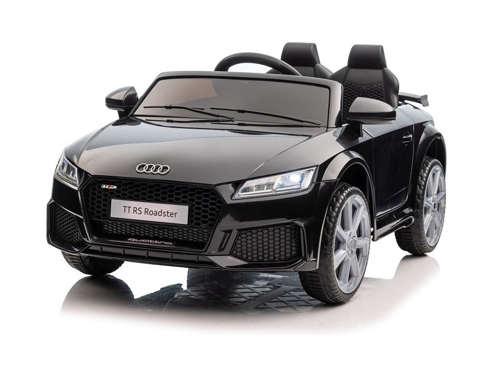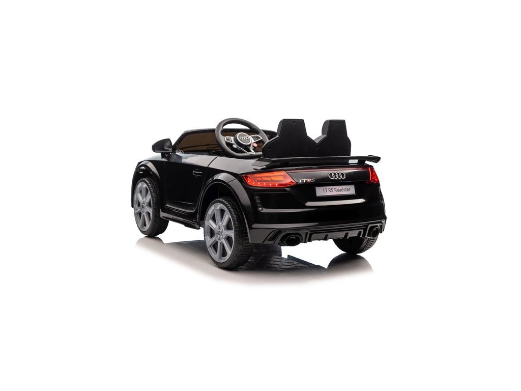 Avto na akumulator Audi TT RS Roadster črn ima dva motorja z močjo 45W. Avto je opremljen z baterijo s kapaciteto 12V 7Ah in ima nosilnost 30 kg. Sedež je oblečen v ekološko usnje in ima varnostni pas. Prednosti avta so delujoče sprednje in zadnje LED luči.