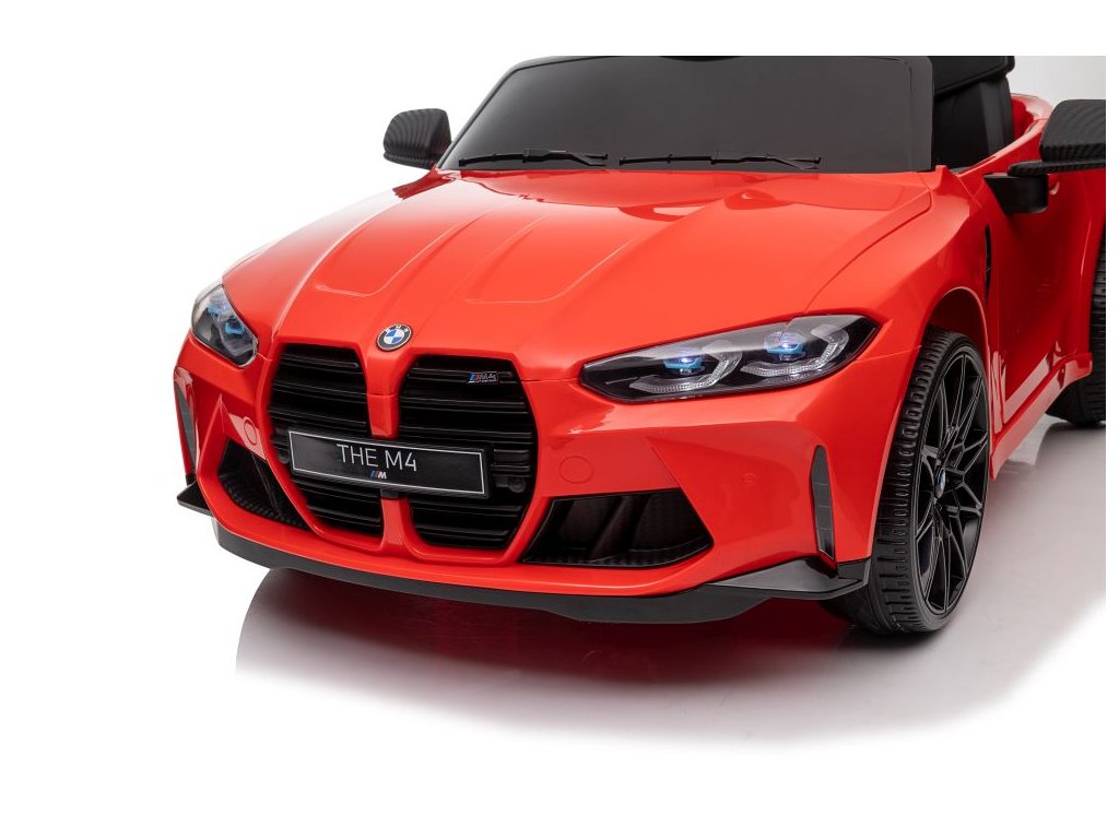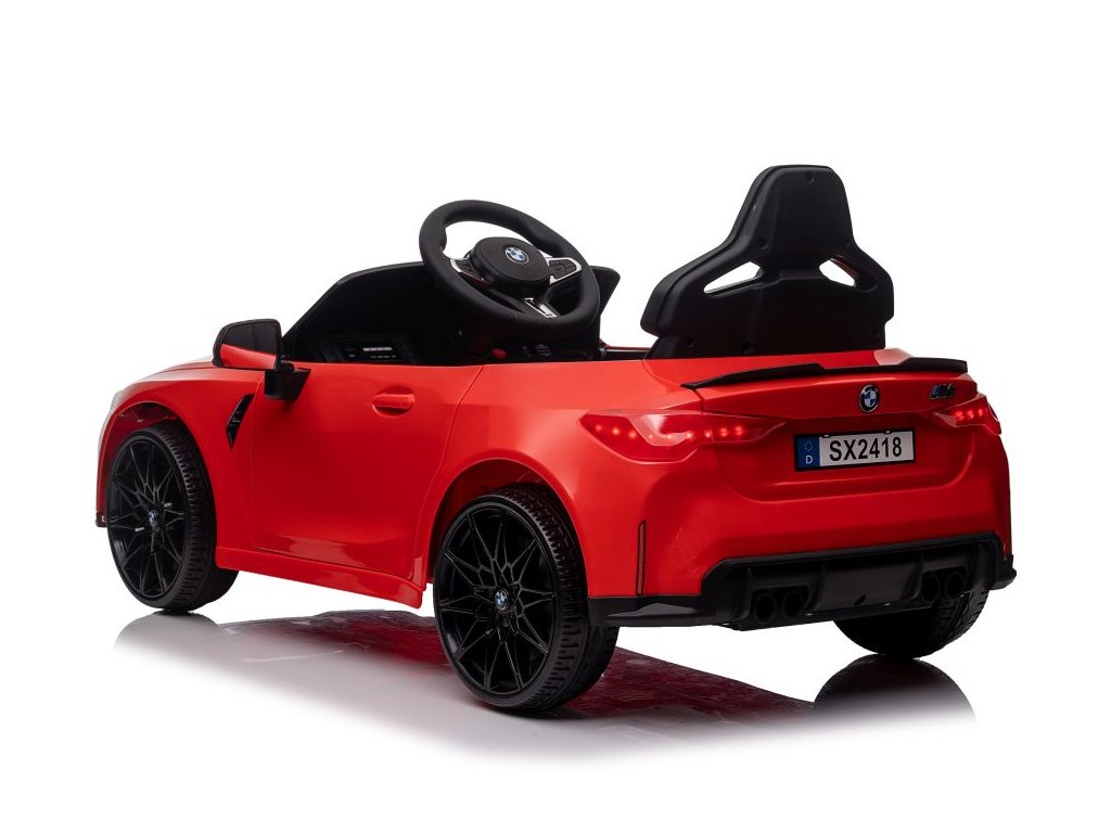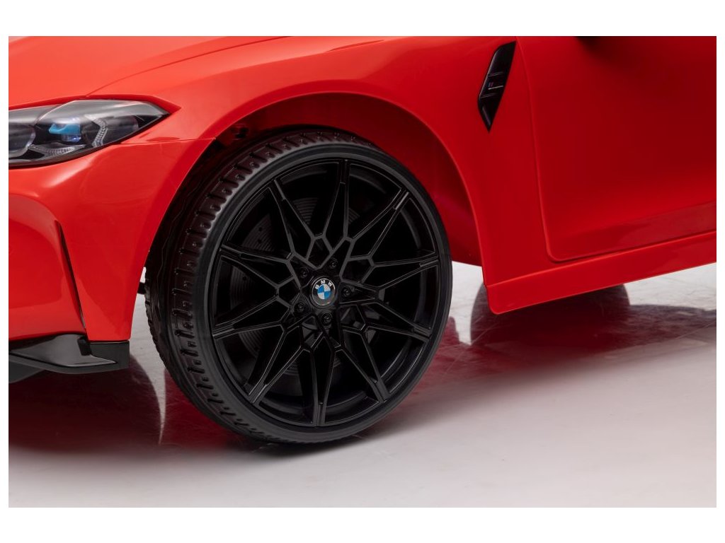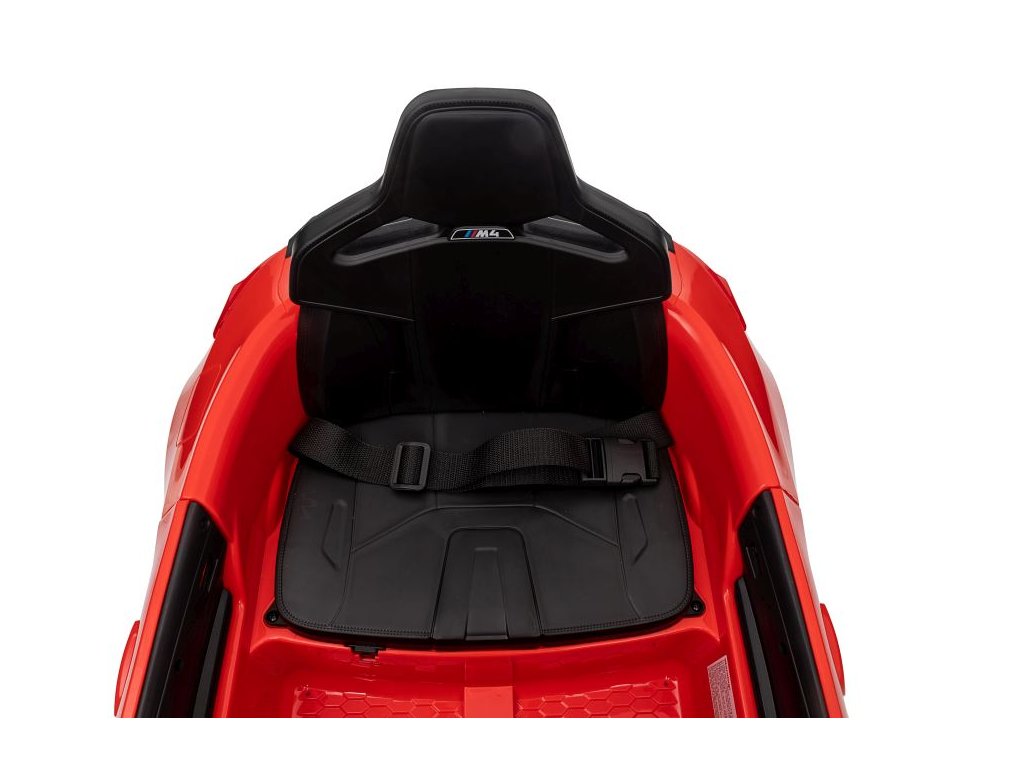 Otroški licencirani avto BMW M4 se pripelje na mehkih penastih EVA kolesih, ki so tiha in se prilagajajo različnim vrstam terena. Otrok se usede v udobno oblikovan sedež iz ekološkega usnja, za varnost pa poskrbijo varnostni pasovi.