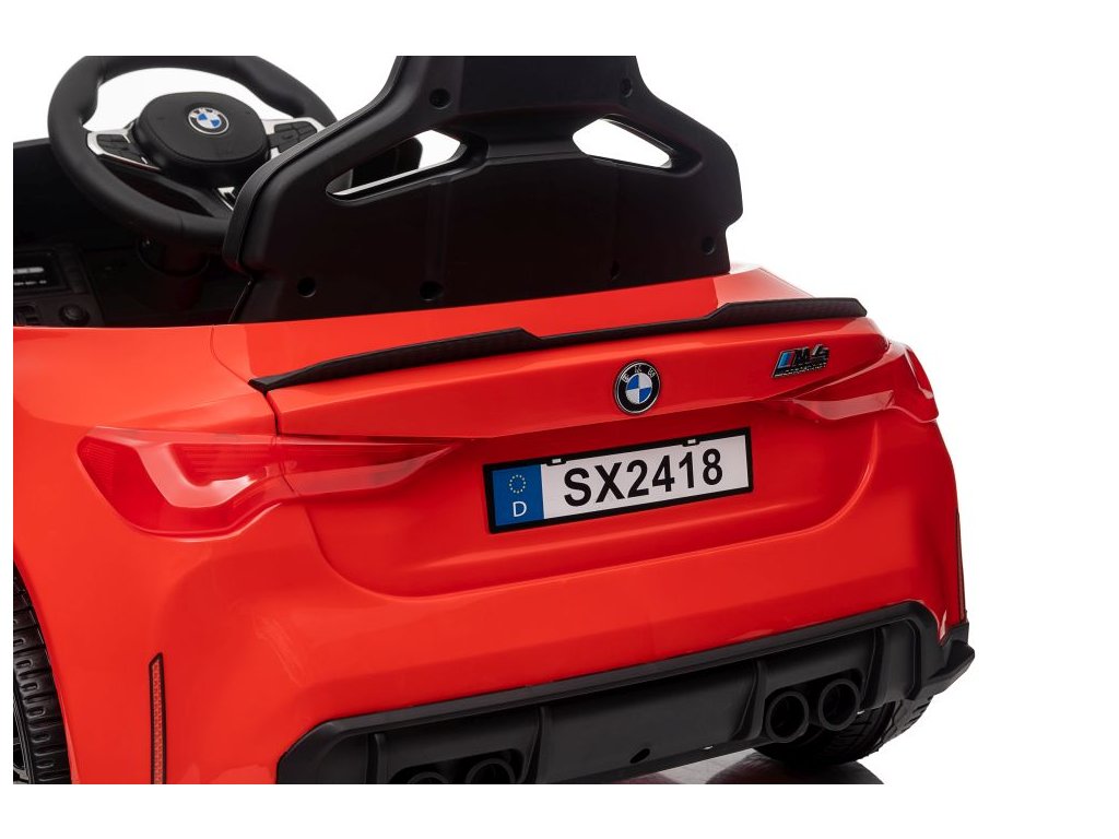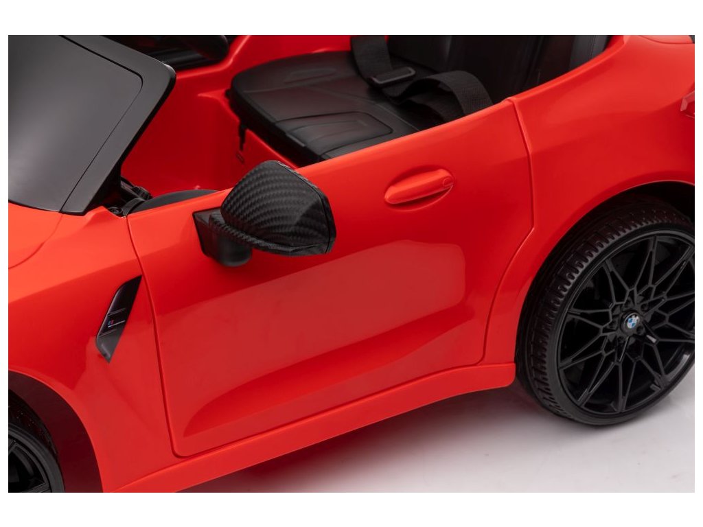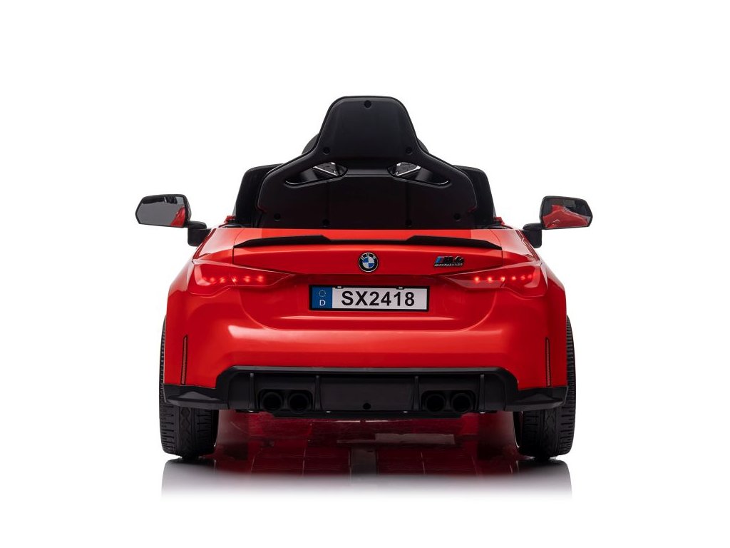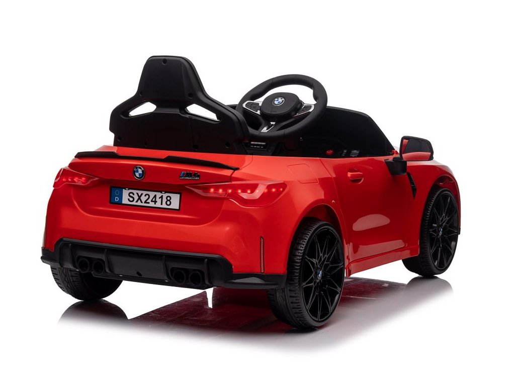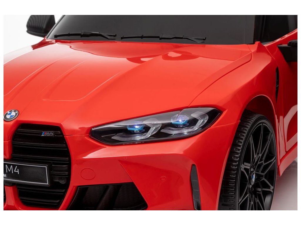 Otroški licencirani avto BMW M4 se pripelje na mehkih penastih EVA kolesih, ki so tiha in se prilagajajo različnim vrstam terena. Otrok se usede v udobno oblikovan sedež iz ekološkega usnja, za varnost pa poskrbijo varnostni pasovi.