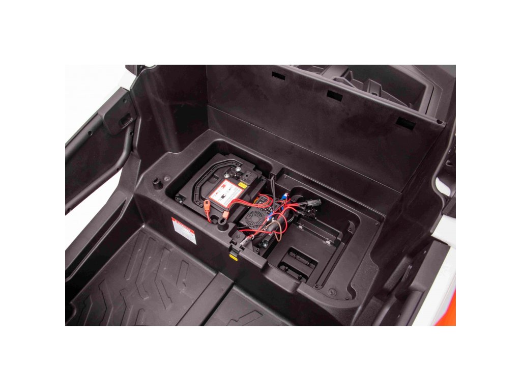 Avtomobilček lahko upravljate s daljinskim upravljalnikom, ki deluje na frekvenci 2,4 GHz. Na daljinskem upravljalniku so tri hitrosti in varnostni gumb STOP, ki ob pritisku takoj ustavi avtomobil. Sedež je plastičen in ima varnostne pasove.