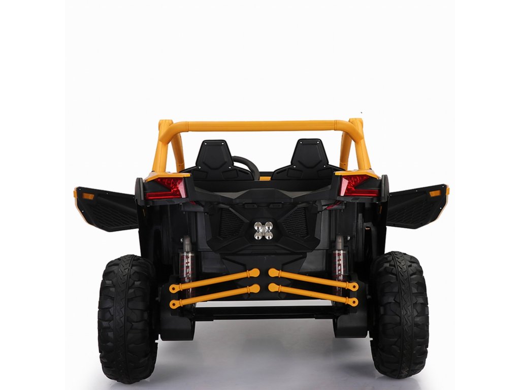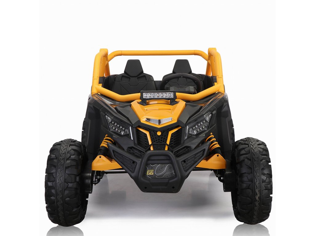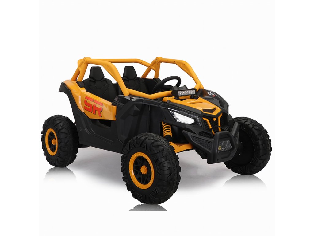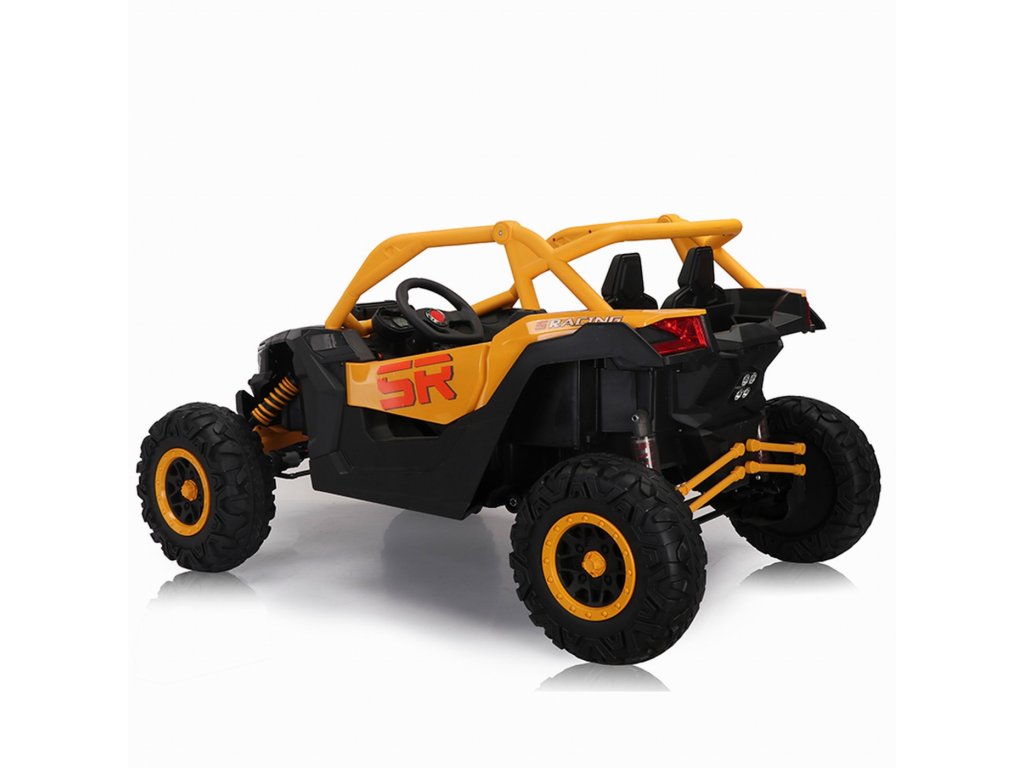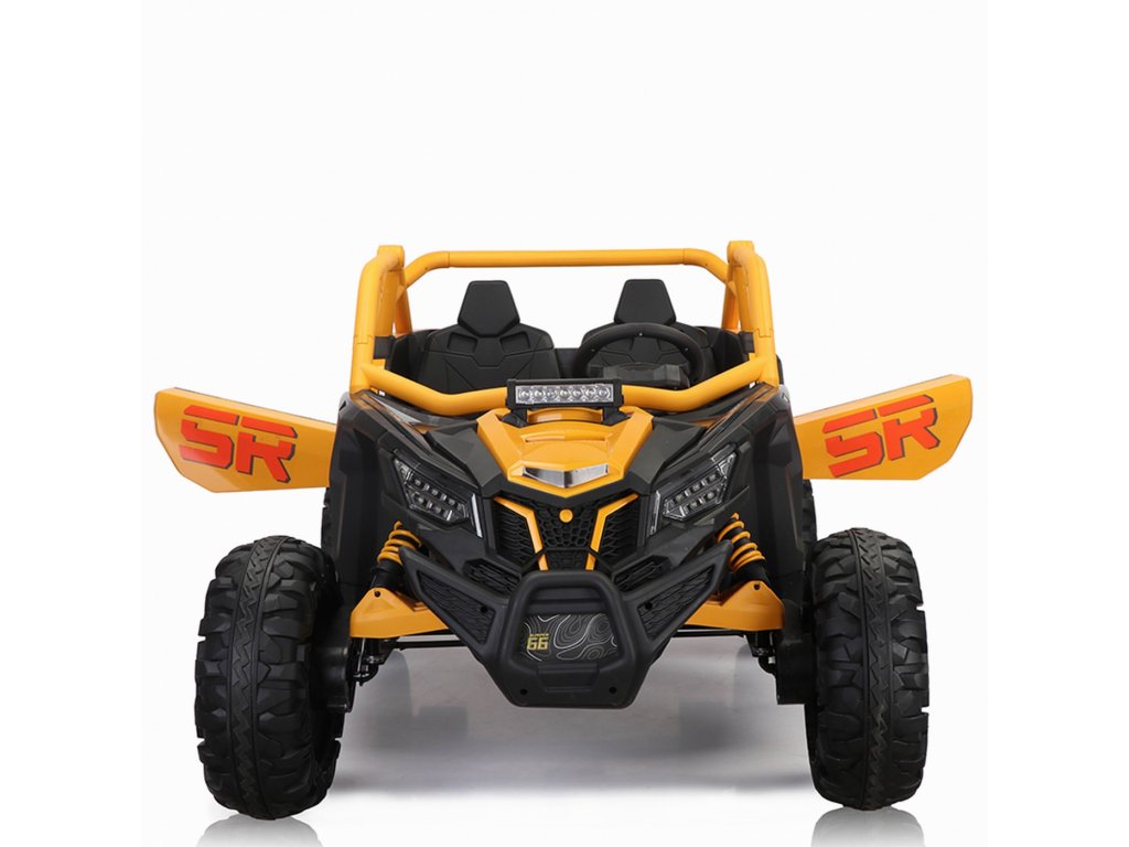 Električno vozilo Buggy SR SUPER 66 4x4 24V rumen s štirimi motorji skupne moči 300W ne sme manjkati v nobeni otroški garaži. Avto je napajan z baterijo s kapaciteto 24V 7Ah. Največja obremenitev vozila je 30 kg. Med vožnjo bo otroka zagotovo navdušil glasbeni panel z MP3, Bluetooth, USB, AUX, vhodom za SD kartico in Radiom.