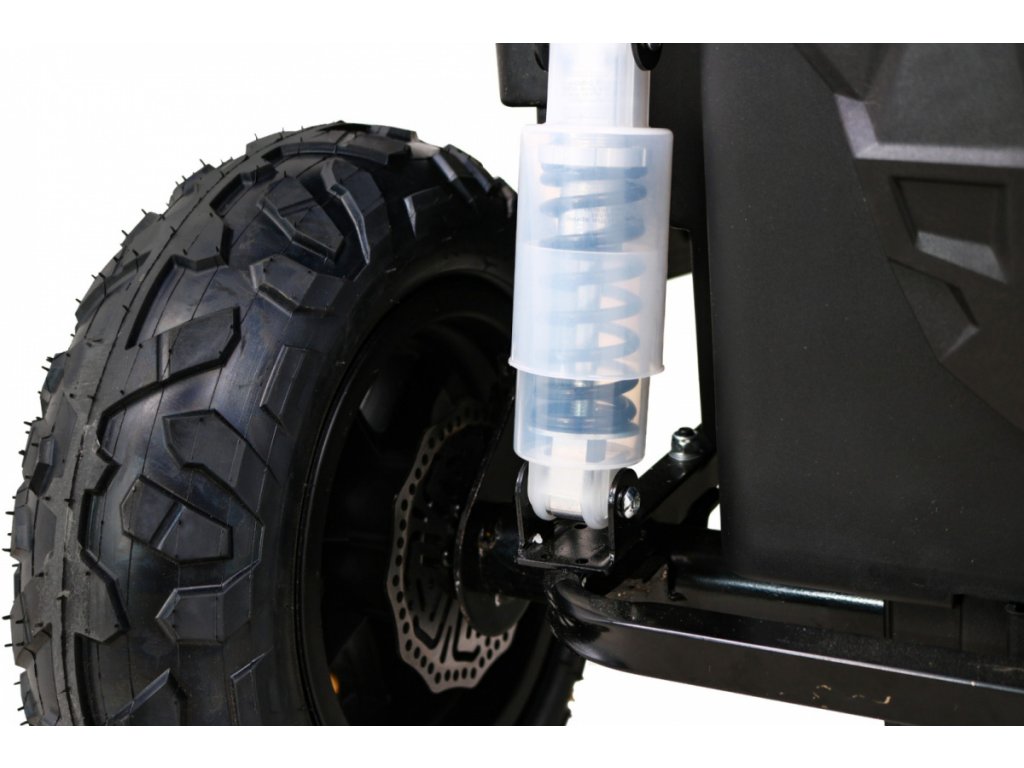 Otroški električni avto Buggy UTV Strong ima zmogljiv električni motor 180W in napihljive gumijaste pnevmatike. Zaradi nosilnosti do 100 kg in širokega sedeža se v avto udobno usedeta dva otroka.