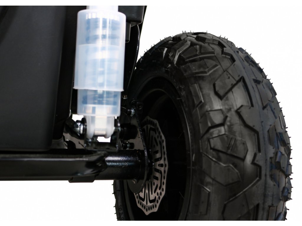Za varnost skrbijo varnostni pasovi in funkcija samodejne zavore, ki se aktivira takoj, ko se noga dvigne s plinskega pedala. Vozilo ima sprednje in zadnje LED luči s stikalom ON/OFF.