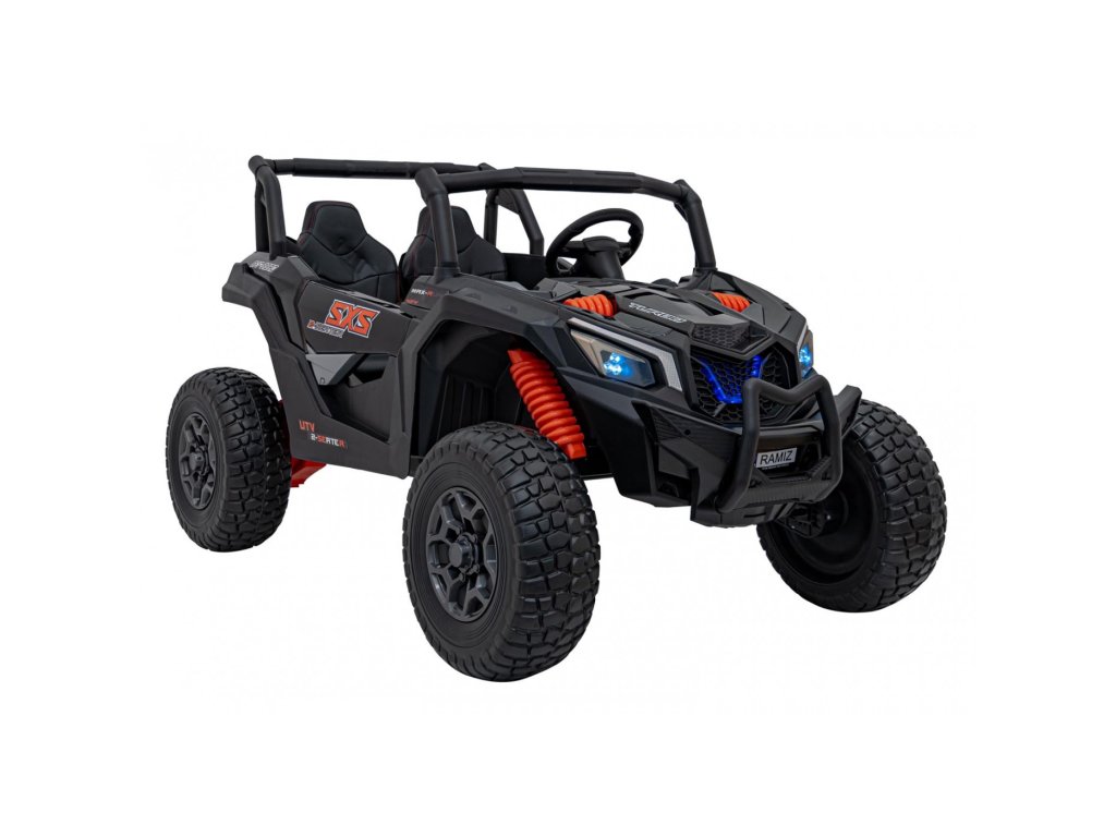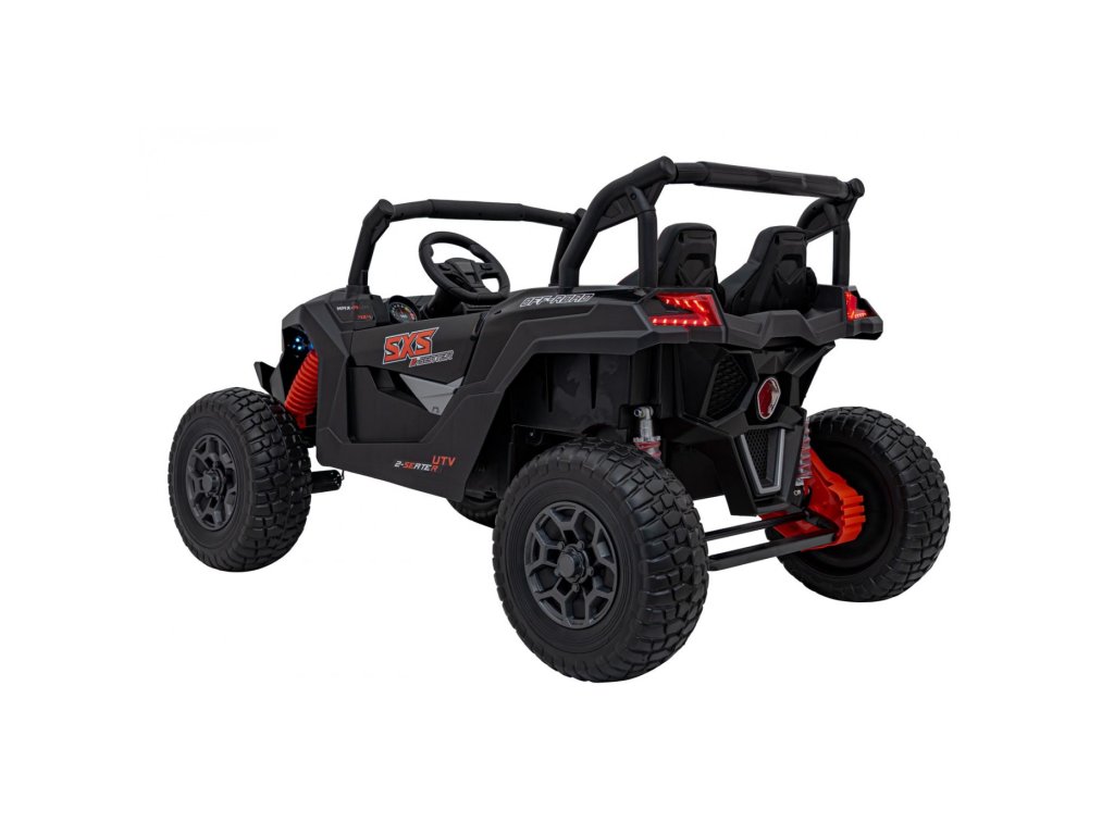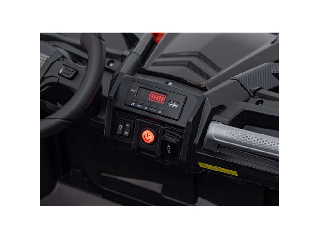 Električno vozilo Avto na akumulator Buggy UTV X3 Off-Road 4x4 24V črn z močnimi motorji s skupno močjo 800W ne sme manjkati v nobeni otroški garaži. Avto poganja baterija s kapaciteto 24V 9Ah. Največja nosilnost vozila je 60 kg. Med vožnjo bo otroka zagotovo pritegnil glasbeni panel z MP3, Bluetooth in USB.