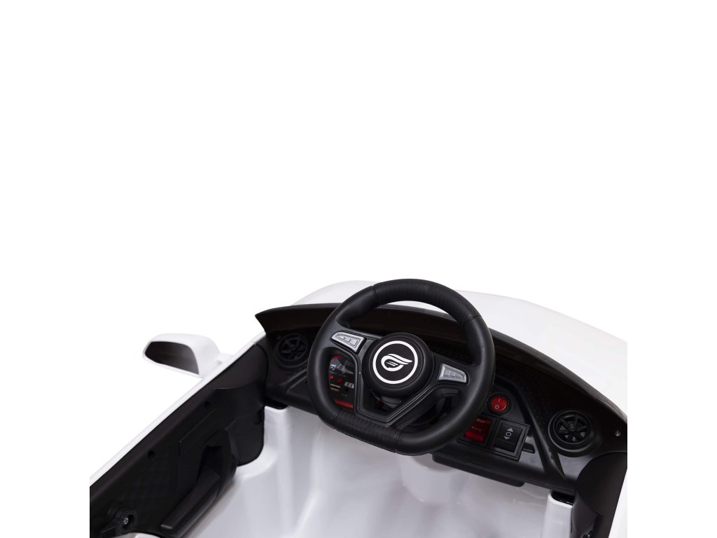 Otroški avto na akumulator Cabrio Fast Wing bel z bogato opremo in inovativnim dizajnom. Notranjost avtomobila je opremljena s sedežem s varnostnimi pasovi, glasbenim panelom z vhodom AUX, MP3, USB in gumbi z melodijami. Pot osvetljujejo sprednje LED luči.