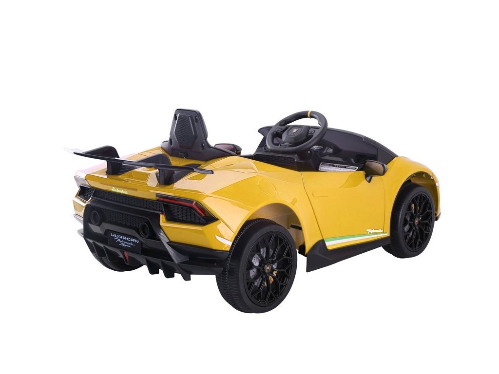 Električni avtomobil za otroke Lamborghini je pomanjšana različica fantastičnega vozila, ima originalno licenco avtomobilskega podjetja. Športni dizajn avtomobila v kombinaciji z rahlo nagnjeno linijo strehe model Lamborghini Huracan loči od drugih ekskluzivnih avtomobilov. Notranjost vozila je prav tako navdihnjena s popolno velikostjo vozila. Gre za združitev športnega sloga, minimalizma in funkcionalnosti.