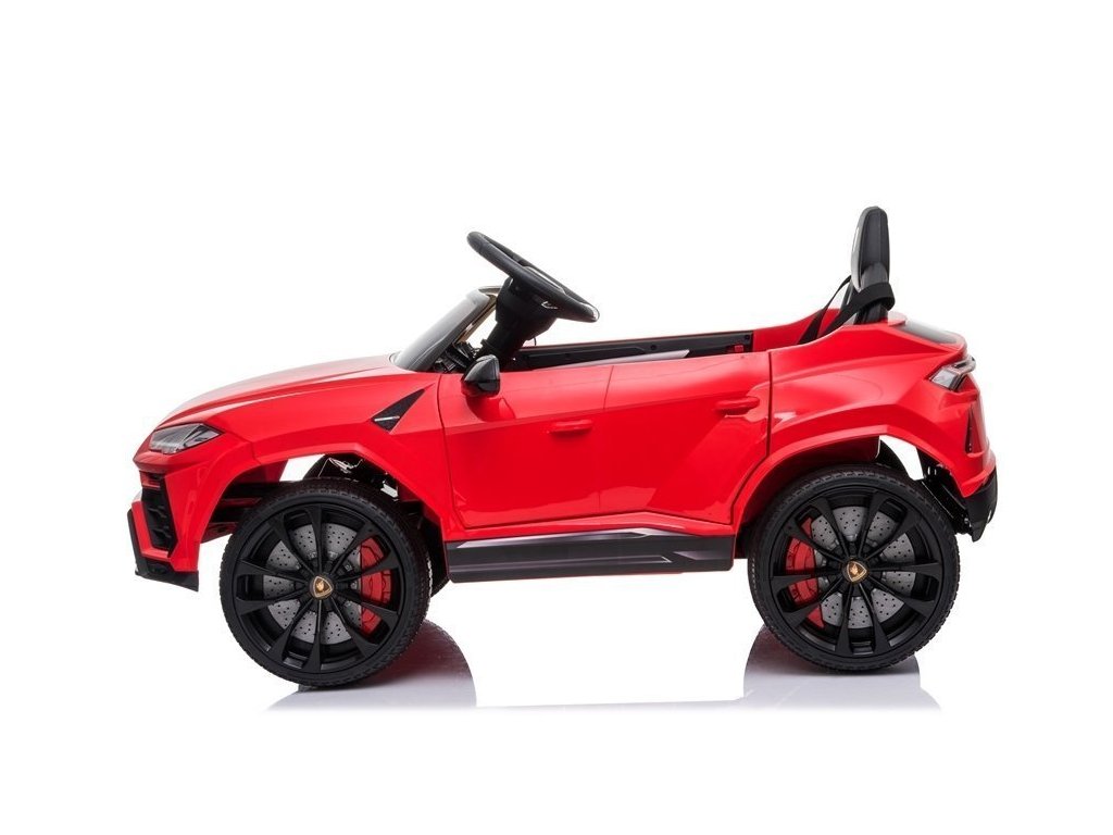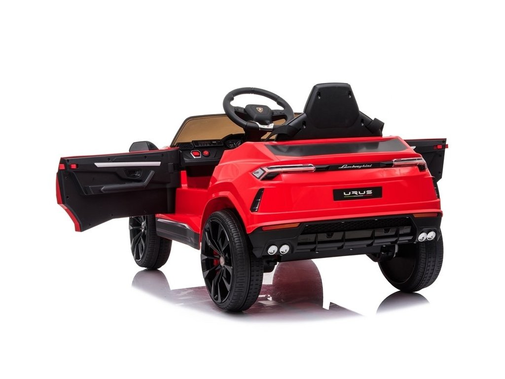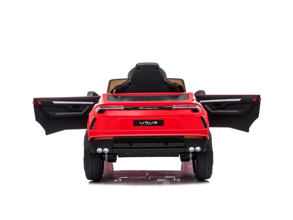 Avto na akumulator Lamborghini Urus rdeč ima dva motorja z močjo 45W, kar pomeni, da ima avto pogon 2x2. Za udobno vožnjo skrbijo penasta EVA kolesa in sedež iz ekološkega usnja. Otrokovo vožnjo zagotovo polepša glasbena plošča z vhodom za MP3, USB in FM radio. Nosilnost avtomobilčka je 30 kg. Avto ima sprednje LED luči in vrata, ki se odpirajo.
