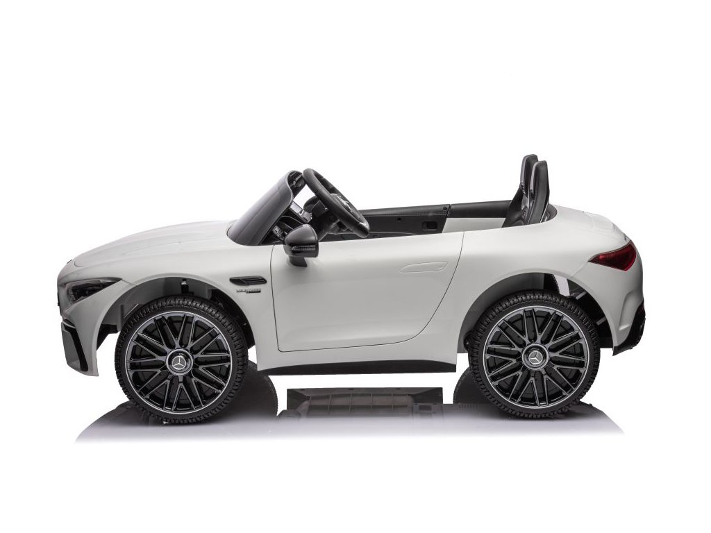 Otroški licencirani avtomobilček Mercedes AMG SL63 prihaja na mehkih penastih EVA kolesih, ki so tiha in se prilagajajo različnim terenom. Otrok bo sedel na udobno oblikovanem sedežu iz ekološkega usnja, za varnost pa bodo poskrbeli varnostni pasovi.