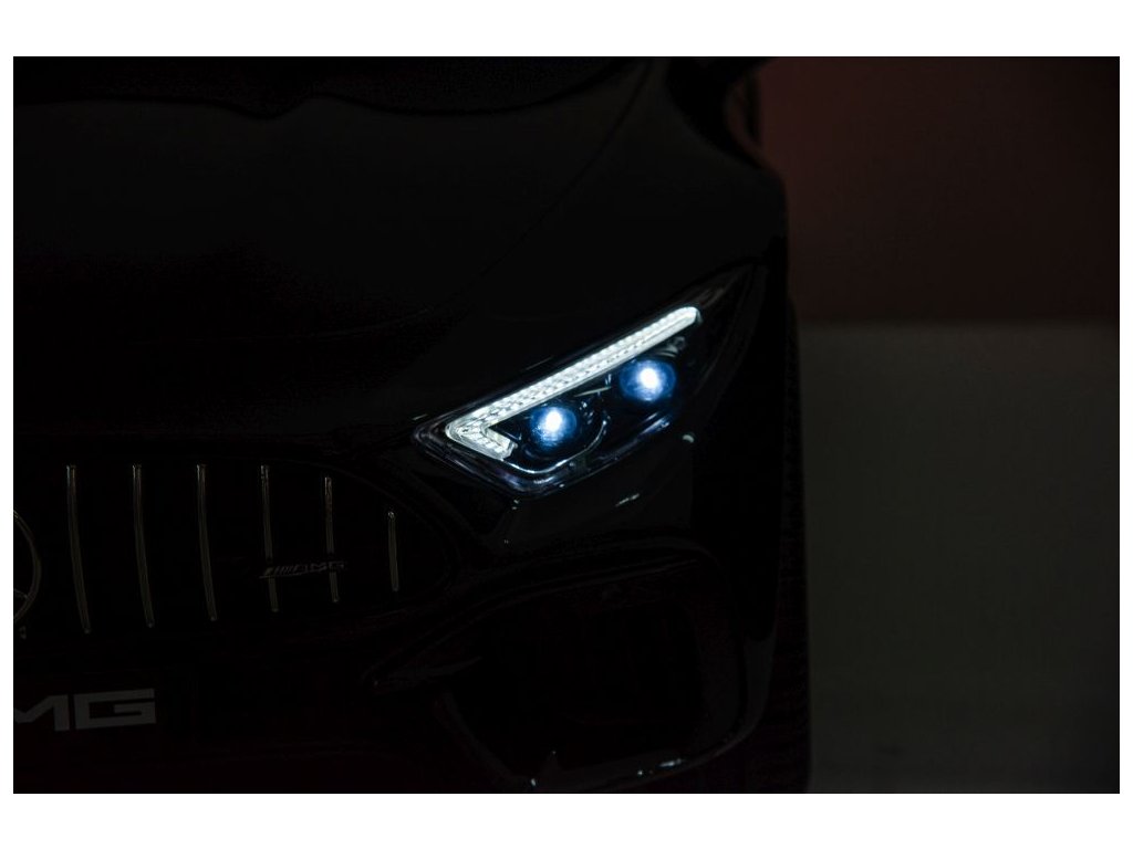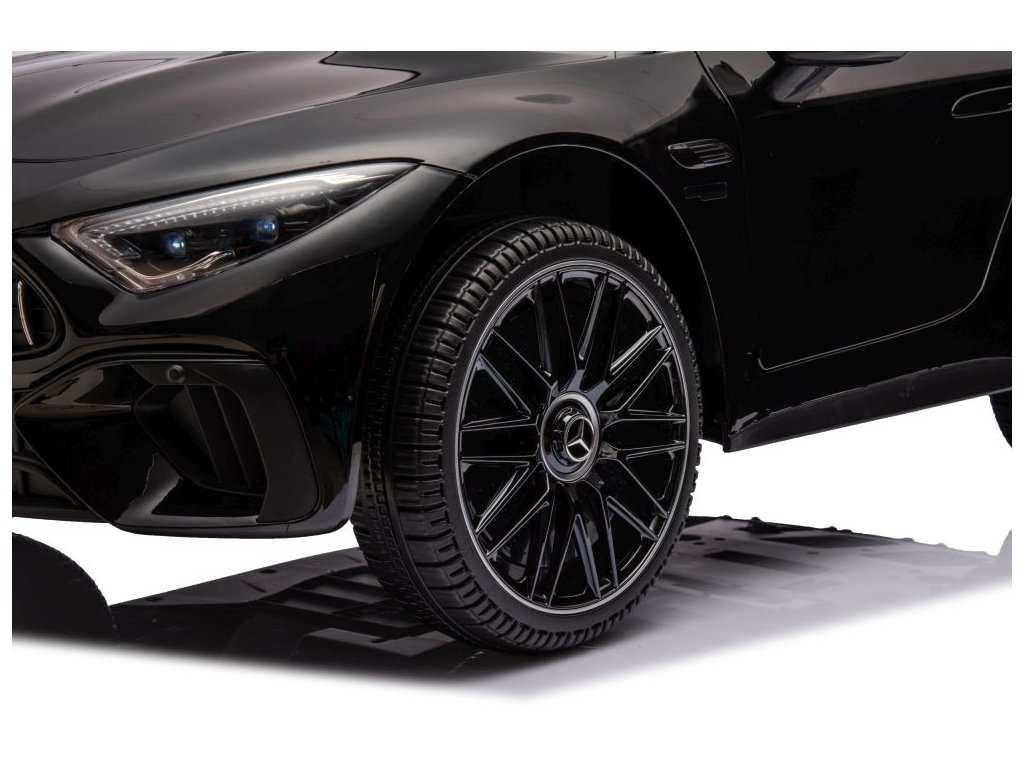Otroški licenciran avtomobilček Mercedes AMG SL63 prihaja na mehkih penastih EVA kolesih, ki so tiha in se prilagodijo različnim vrstam terena. Otrok se usede v udobno oblikovan sedež iz ekološkega usnja in za varnost poskrbijo varnostni pasovi.