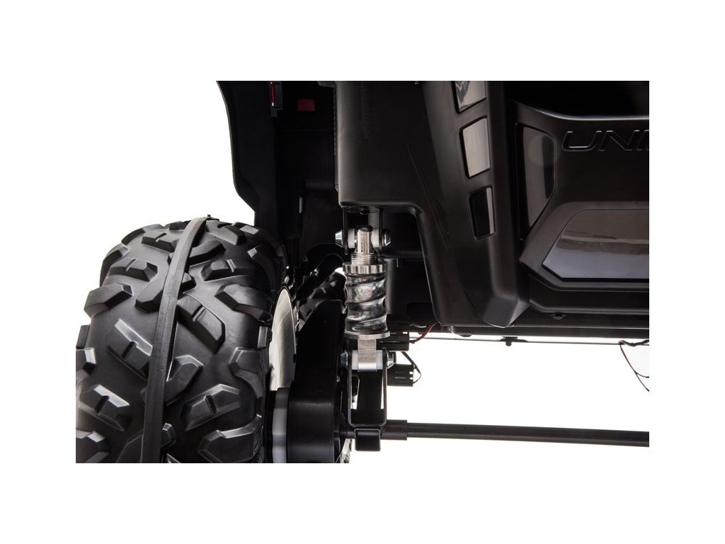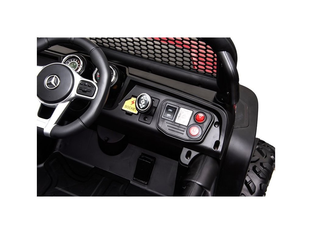 Otroški električni avto Mercedes-Benz Unimog S je zasnovan tako, da premaga skoraj vsak teren. Ima štiri zmogljive električne motorje in mehka penasta Eva kolesa, ki so tiha in zanesljiva.