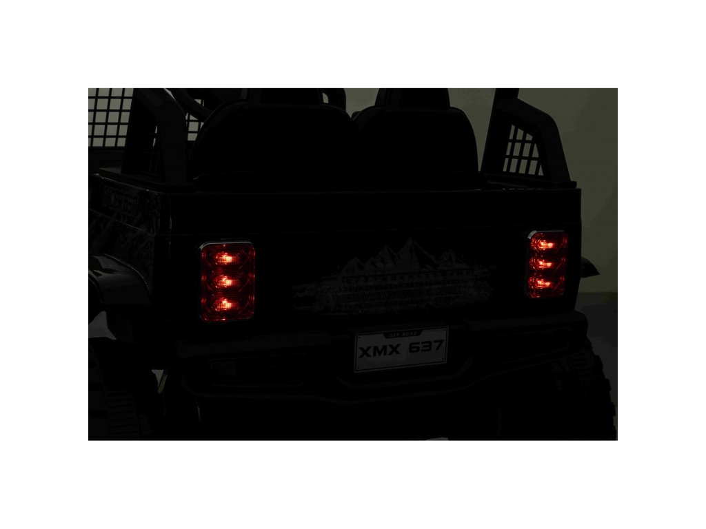 Električni avtomobilček OFF ROAD s štirimi motorji skupne moči 140W ne sme manjkati v nobeni otroški garaži. Avto na akumulator je napajan z baterijo kapacitete 12V 10Ah. Največja obremenitev vozila je 50 kg. Med vožnjo bo otroka gotovo navdušil glasbeni panel z MP3, Bluetooth, USB, AUX, Radiem in režo za SD kartico.