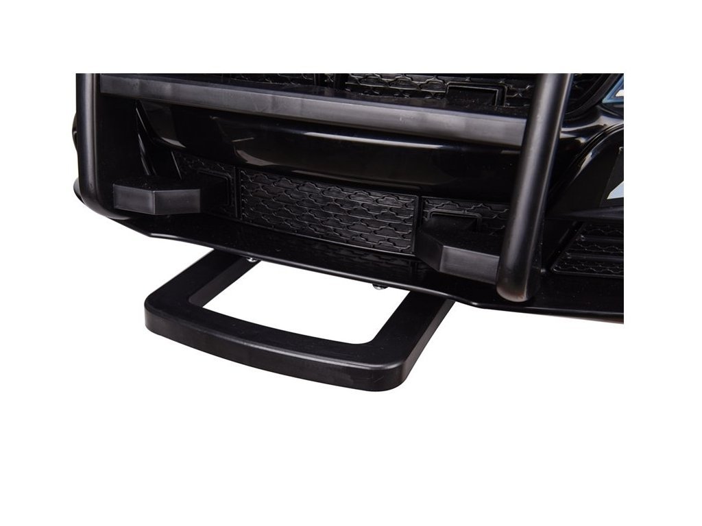 Predstavljeno črno vozilo na baterije privlači pozornost že od daleč. Črno ohišje je pokrito s številnimi nalepkami v kontrastnih barvah, ki so oblikovane po policijski konvenciji. Na njih so napisi POLICE in slike, ki spominjajo na pravi policijski znak. To še ni vse – modre in rdeče luči so nameščene nad okvirjem zatemnjenega vetrobranskega stekla, kar zagotovo prinaša nasmeh na obraz vsakemu otroku.