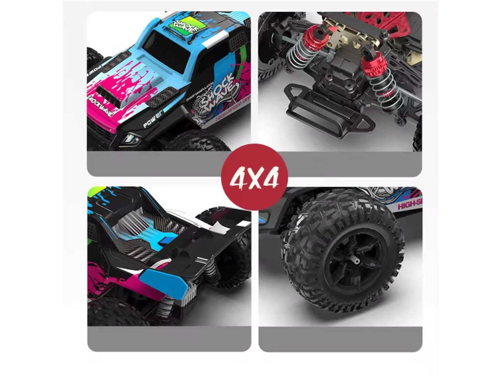 Doživite ekstremno zmogljivost z RC pošastnim tovornjakom v merilu 1:16. Ta model je opremljen z zmogljivim brezkrtačnim motorjem, ki lahko doseže hitrosti nad 60 km/h, in pogonom na vsa štiri kolesa za največji oprijem in stabilnost.