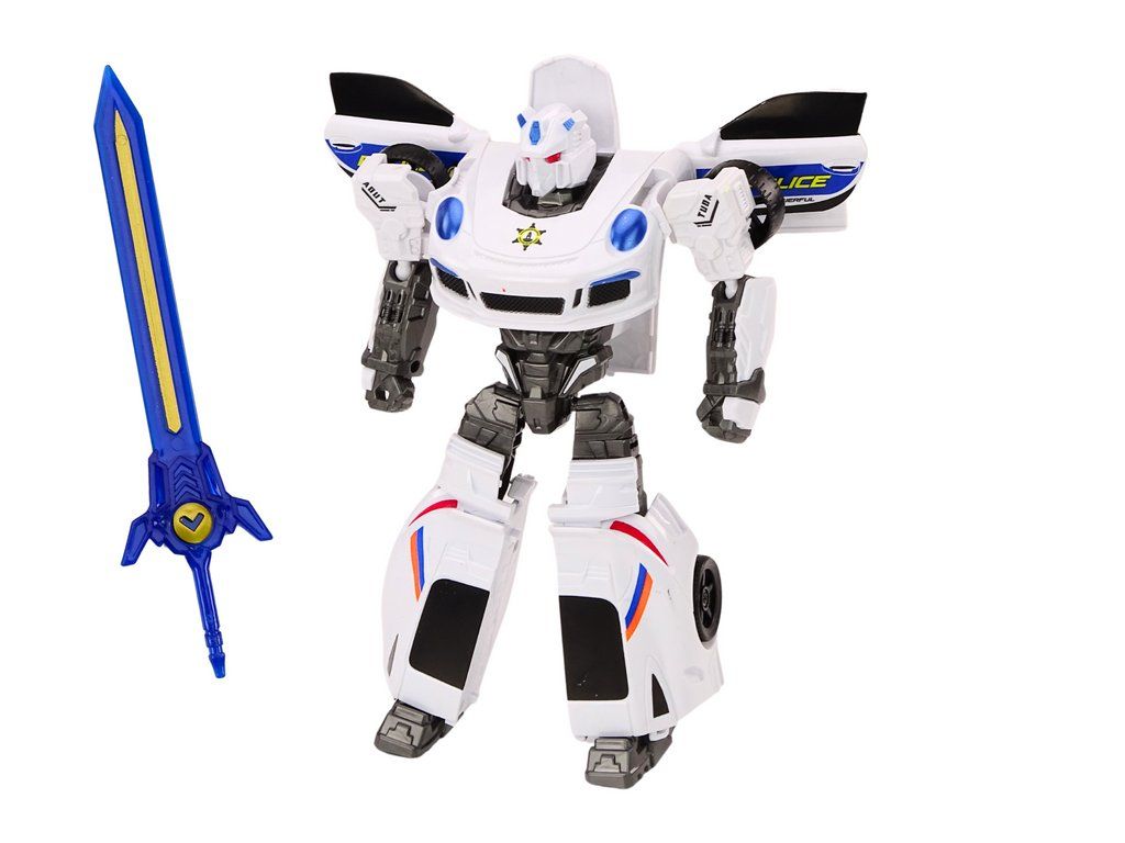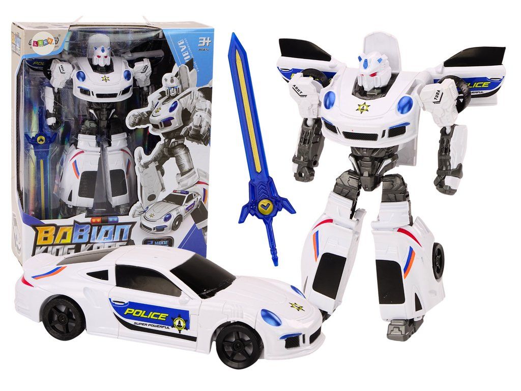 Avto-robot 2v1 Transformacija Policijski Avto Bel