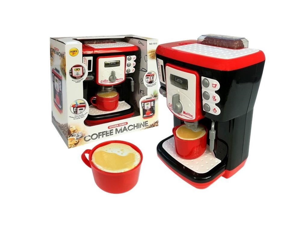 Črno-rdeči kavni aparat se bo zagotovo odlično podal v katero koli otroško kuhinjico. Ima sodoben dizajn in vsebuje veliko funkcij.