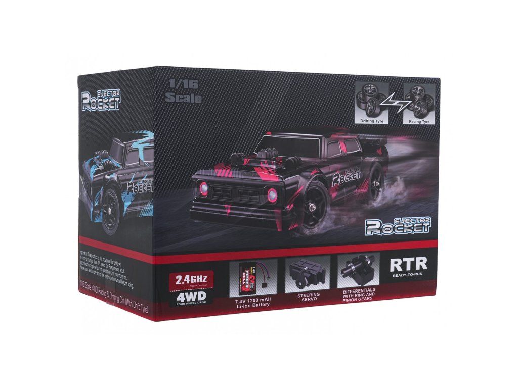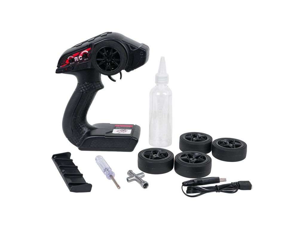 Daljinsko vodeno drift vozilo v merilu 1:16 za otroke od 14 let. Ohišje vozila je izdelano iz trpežne plastike, da prenese tudi najbolj divji drift. Gladka kolesa omogočajo vozilu, da brez napora zapelje v ostre zavoje s kontroliranim zdrslom. Paket vsebuje tudi 4 nadomestne pnevmatike s profilom za standardne dirke. Vozilo se premika v vse smeri: naprej, nazaj, zavija levo in desno ter drifta. Model napaja 7,4V baterija (vključena v paket), daljinski upravljalnik pa 3 baterije tipa 3 x AA 1,5V (niso priložene).