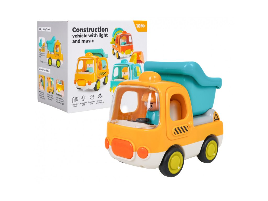 Interaktivno kiper kamion s zvočnimi in svetlobnimi učinki za otroke od desetega meseca starosti. Igrača je izdelana iz trpežne in varne plastike, nima ostrih robov in bo vzdržala tudi najbolj energično igro. Žive barve pritegnejo otrokovo pozornost in ga spodbujajo k igri. Zvočni in svetlobni učinki spodbujajo otrokove čute in dodajo igri realizem. Kolesa se enostavno premikajo po tleh, vrata in dvigalo z lestvijo pa so premični. Igrača deluje na 3 baterije tipa AG13 (priložene).