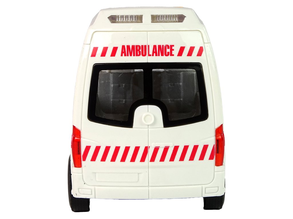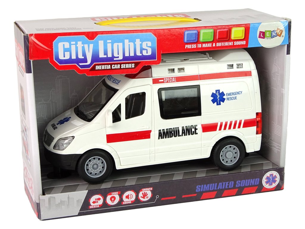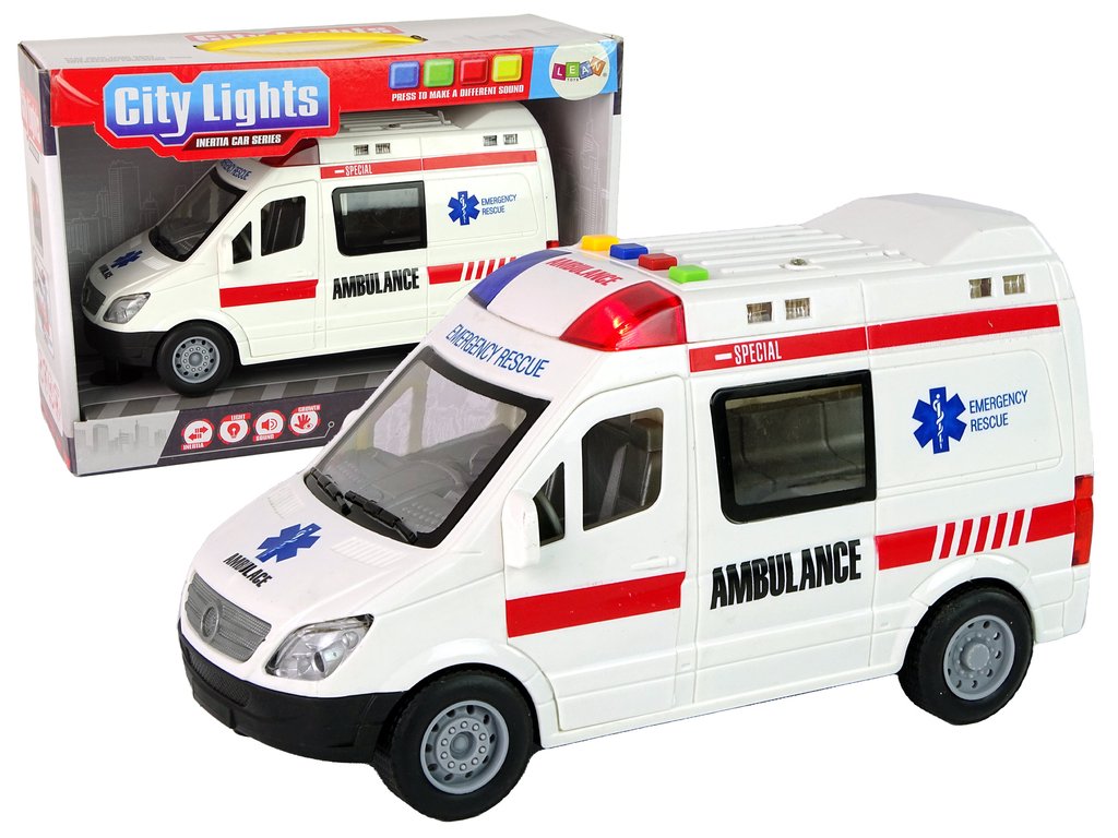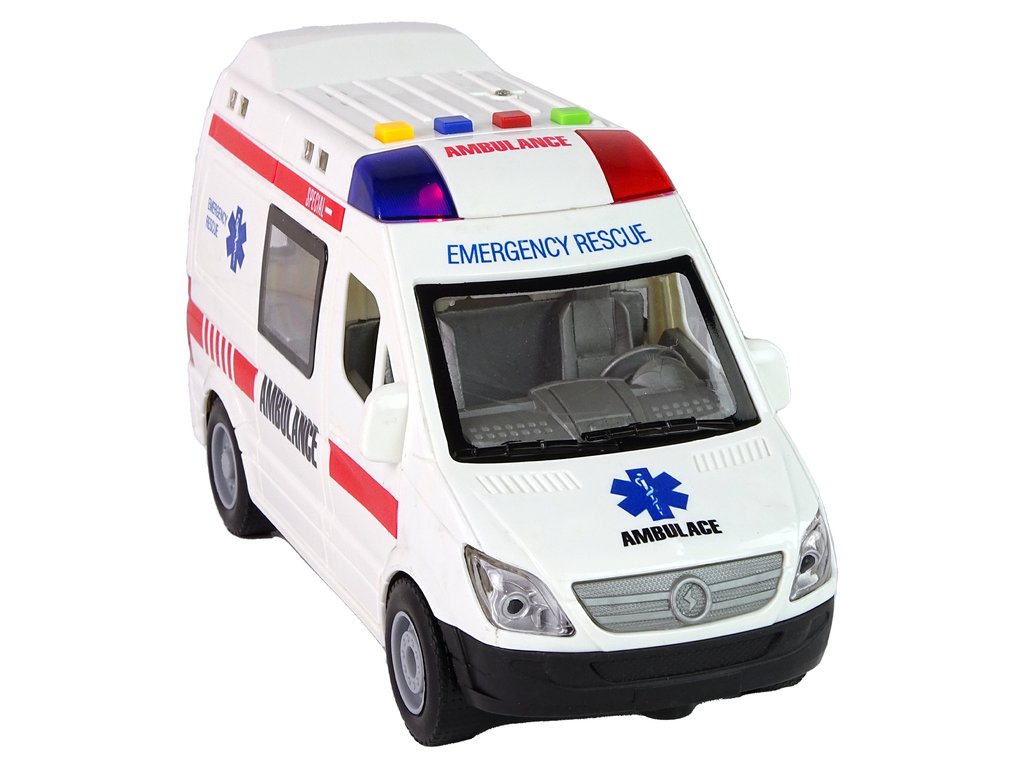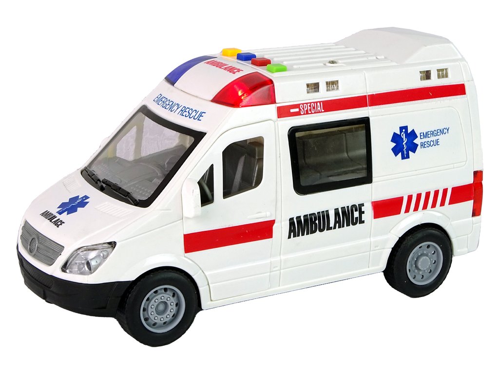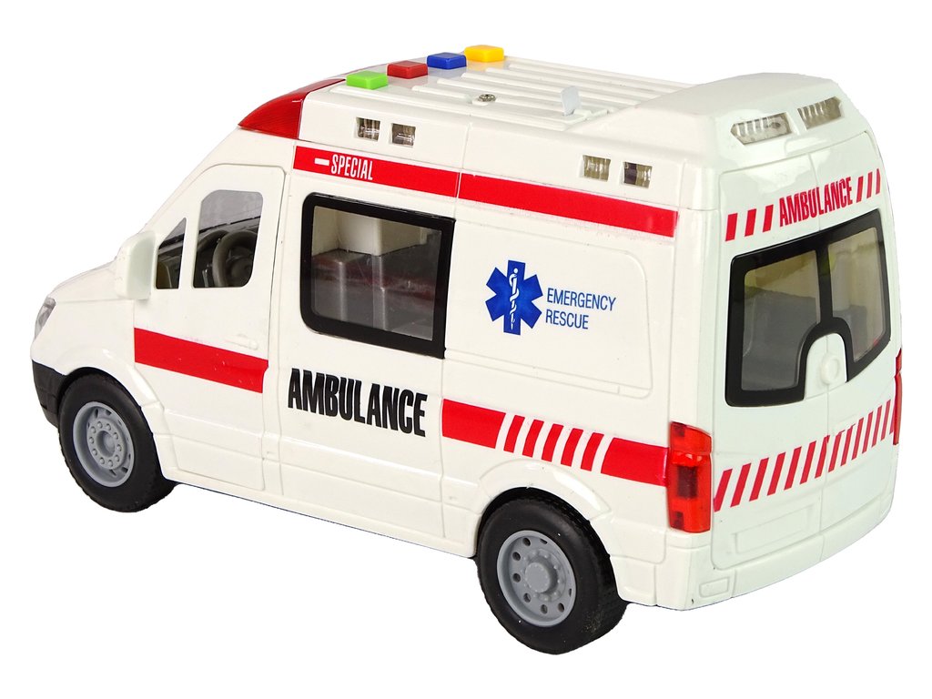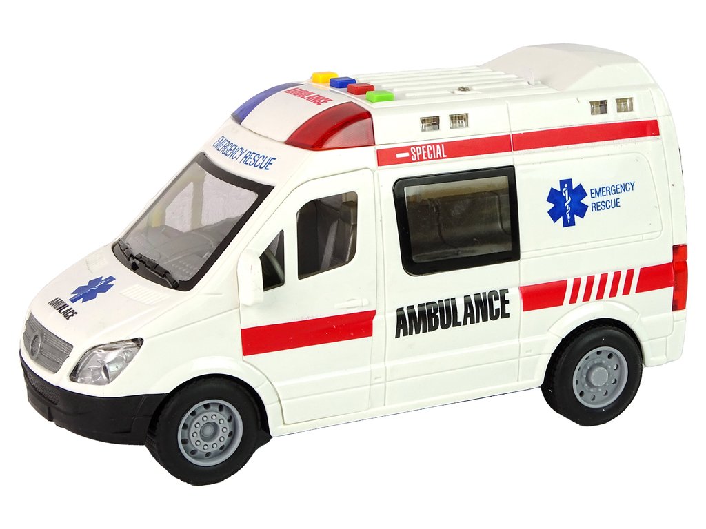 Avtomobilček reševalno vozilo s trenjem belo je osnovno prevozno sredstvo v bolnišnici, brez njega ni mogoče prevažati pacienta. Je neprecenljiv medicinski pripomoček v nujnih primerih. Vaš otrok se lahko postavi v čevlje voznika takšnega vozila.