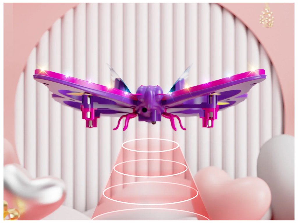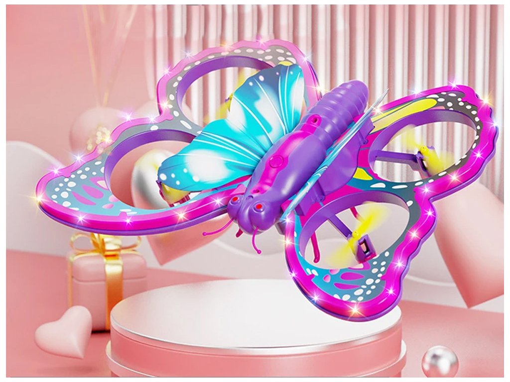 Uveďte své dítě do světa kouzelné zábavy s jedinečným dronem ve tvaru roztomilého motýla! Tento dálkově ovládaný létající motýl ohromí efektními blikajícími LED diodami, které rozzáří každý let – obzvláště fascinující po setmění.
