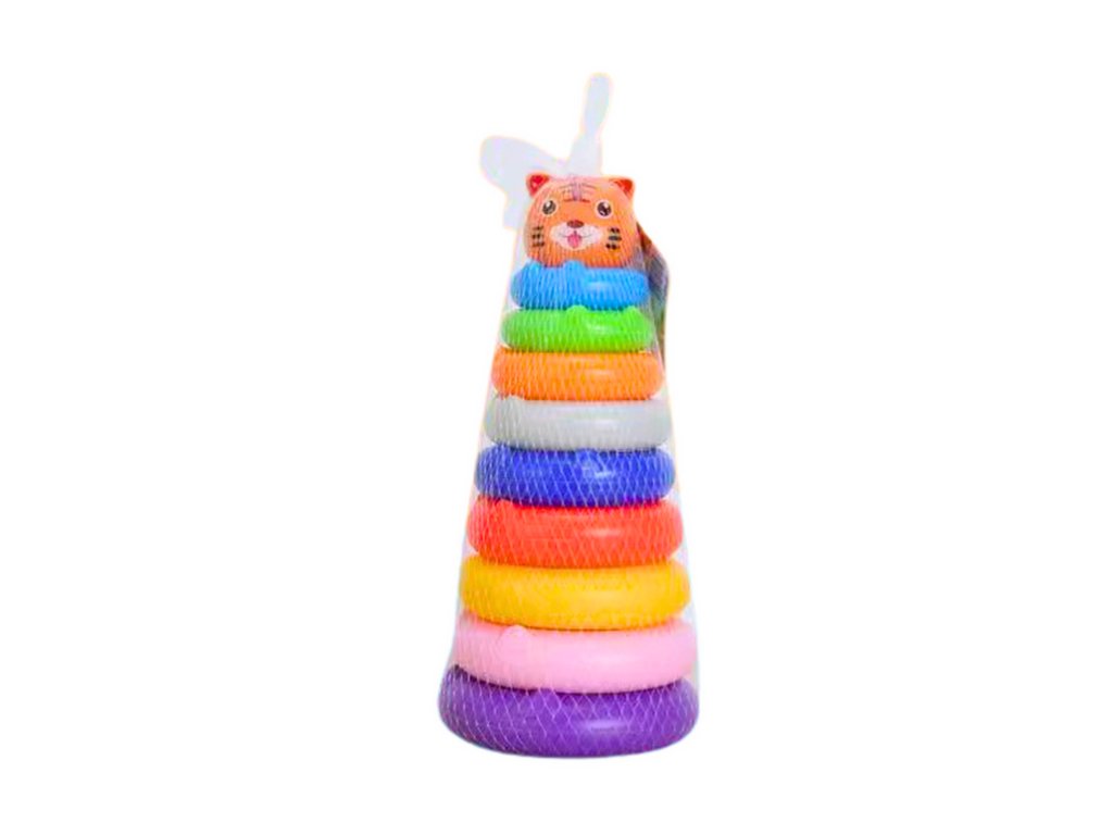 Barvna piramida iz obročev, ki združuje izobraževanje in ustvarjalnost. Ta čudovita igrača je sestavljena iz obročev različnih velikosti in barv, ki jih otroci lahko zlagajo v privlačno piramido. Vsak obroč je skrbno zasnovan, da spodbuja razvoj motoričnih in kognitivnih veščin otrok, hkrati pa jih uči o različnih oblikah, barvah in velikostih.