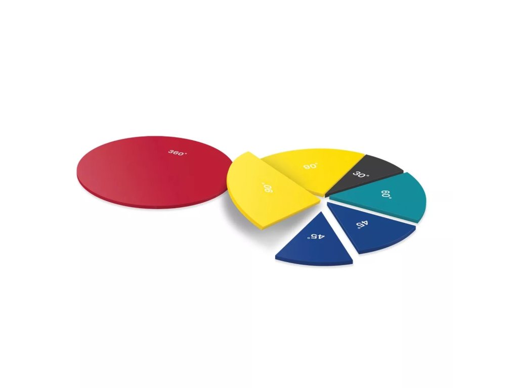 Vzdržljivi, barvno ločeni krogi s koti podjetja Learning Resources, zasnovani kot pripomoček za poučevanje geometrije in merjenje kotov v šolah in doma.