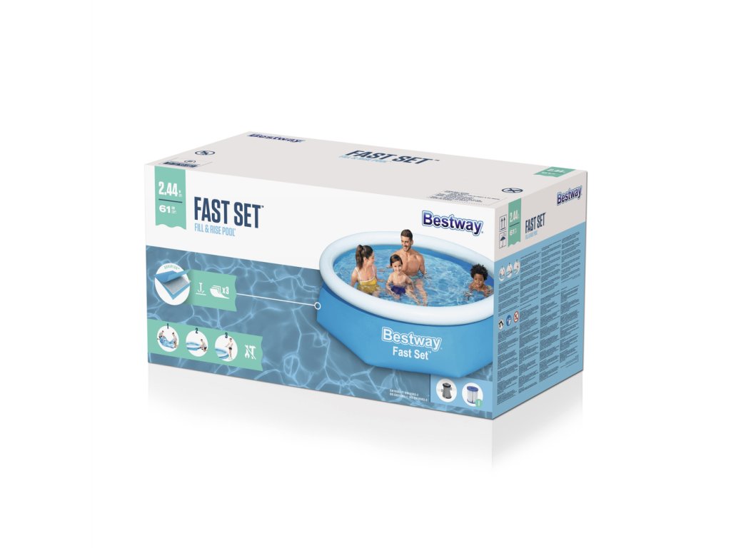 Bazen za vrt Bestway 244 x 61 cm je izdelan iz trpežnega PVC materiala s plastjo, odporno proti predrtju. Po koncu sezone boste bazen lahko enostavno in hitro zložili, saj je opremljen z ventilom za praznjenje z nadzorovanim pretokom, kar omogoča hitro odvajanje vode.