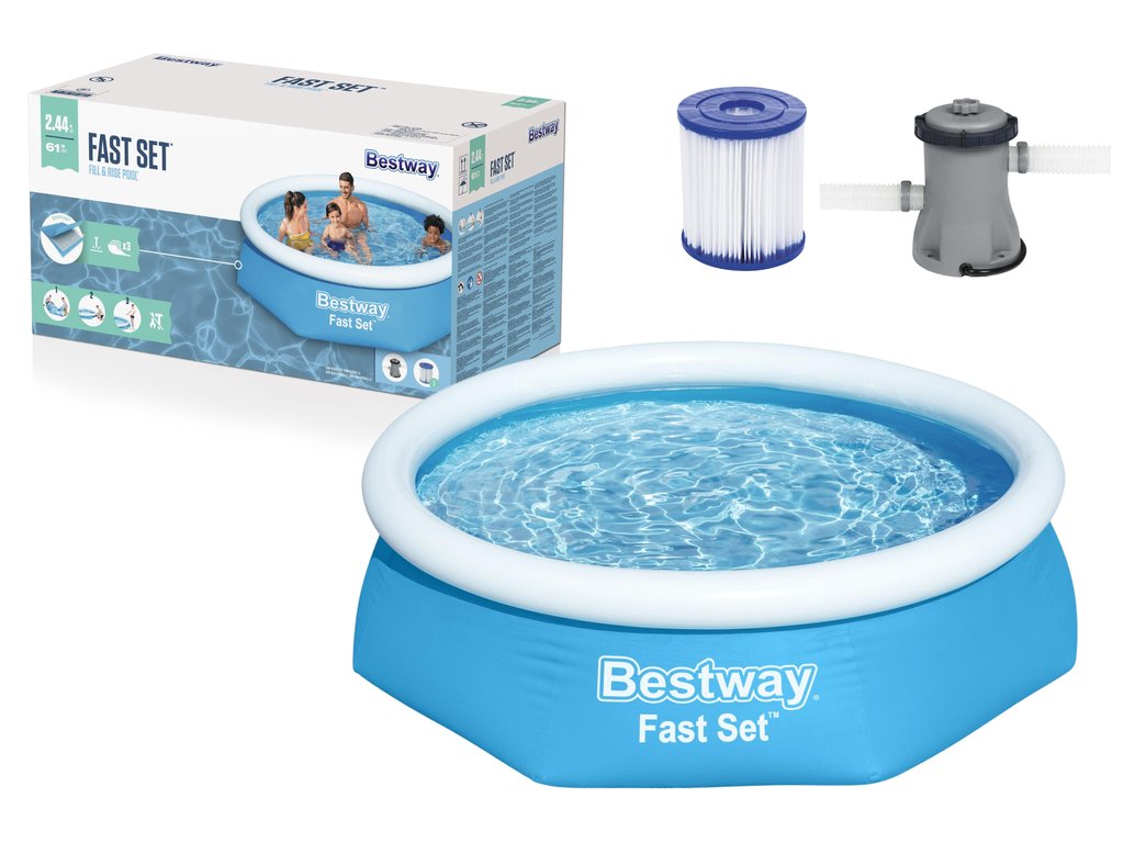 V ponudbi Bestway boste našli široko paleto izdelkov – od nadzemnih bazenov in masažnih bazenov, preko napihljivih blazin, supov in vodnih igrač, pa vse do praktičnih filtrirnih sistemov in dodatne opreme za bazene. Izdelki so zasnovani z poudarkom na varnosti, vzdržljivosti, enostavni namestitvi in dolgi življenjski dobi, zato so idealna izbira za družine, ki želijo ustvariti udobno okolje za poletno zabavo in sprostitev.