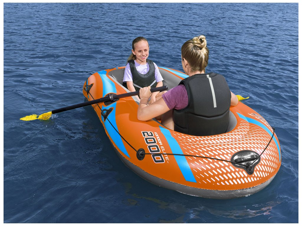Napenjalni čoln Kondor Elite™ 2000 priznanega podjetja Bestway® je idealna rešitev za vsakega navdušenca rekreacijskega plavanja. Brez težav sprejme eno odraslo osebo in enega otroka. Konstrukcija z dvema zračnima komorama zagotavlja trajnost in odpornost. Dodatna prednost čolna Bestway je udobno, napihljivo dno. Na straneh čolna so sponke za enostavno pritrditev vesel, medtem ko vrv z vgrajenimi ročaji omogoča privez čolna. Paket vsebuje 1 par vesel, univerzalno nožno črpalko in popravljalni obliž. Čoln je opremljen z vgrajenim varnostnim ventilom.