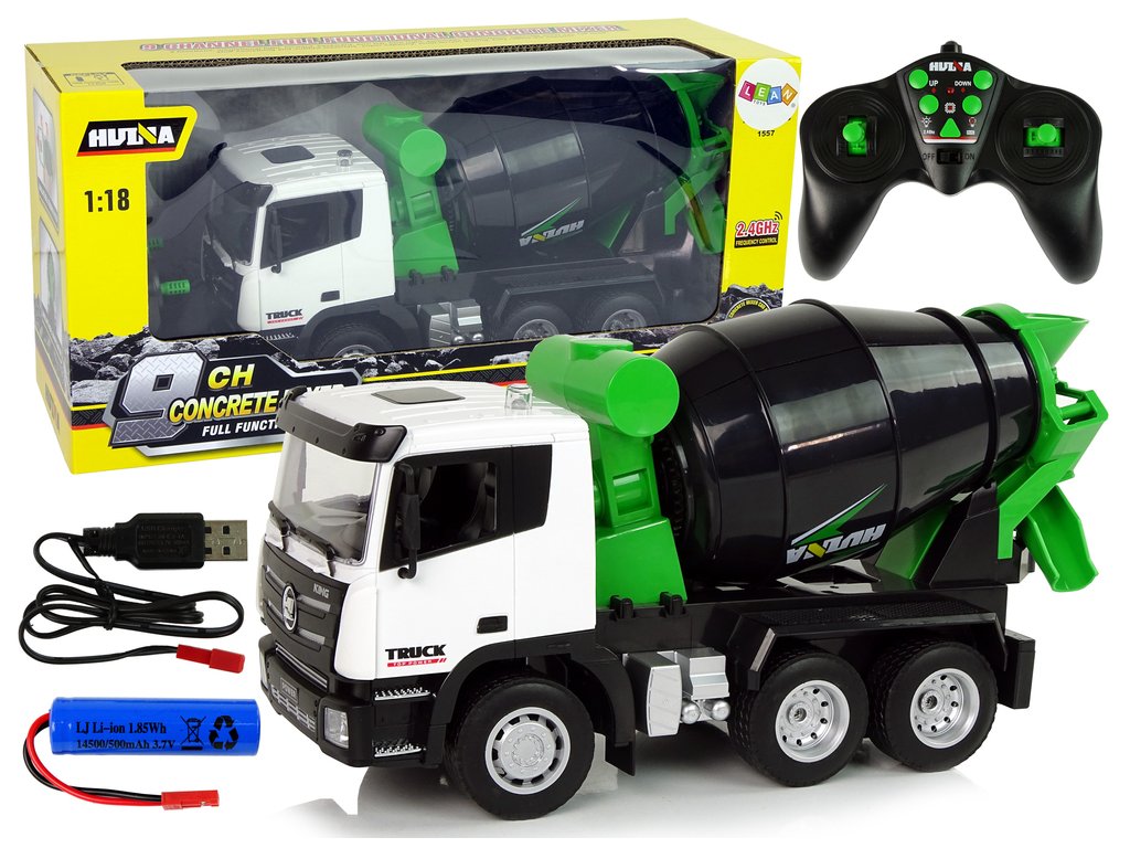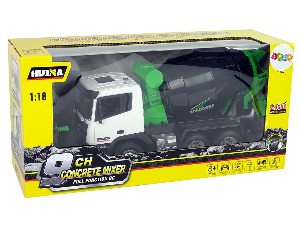 Betonski mešalec na daljinsko vodenje razkrije številne funkcije, ki bodo zadovoljile tudi najbolj zahtevne oboževalce R/C vozil. Prednost tega vozila je daljinsko upravljanje, ki je del kompleta. Oddaja na frekvenci 2,4G.