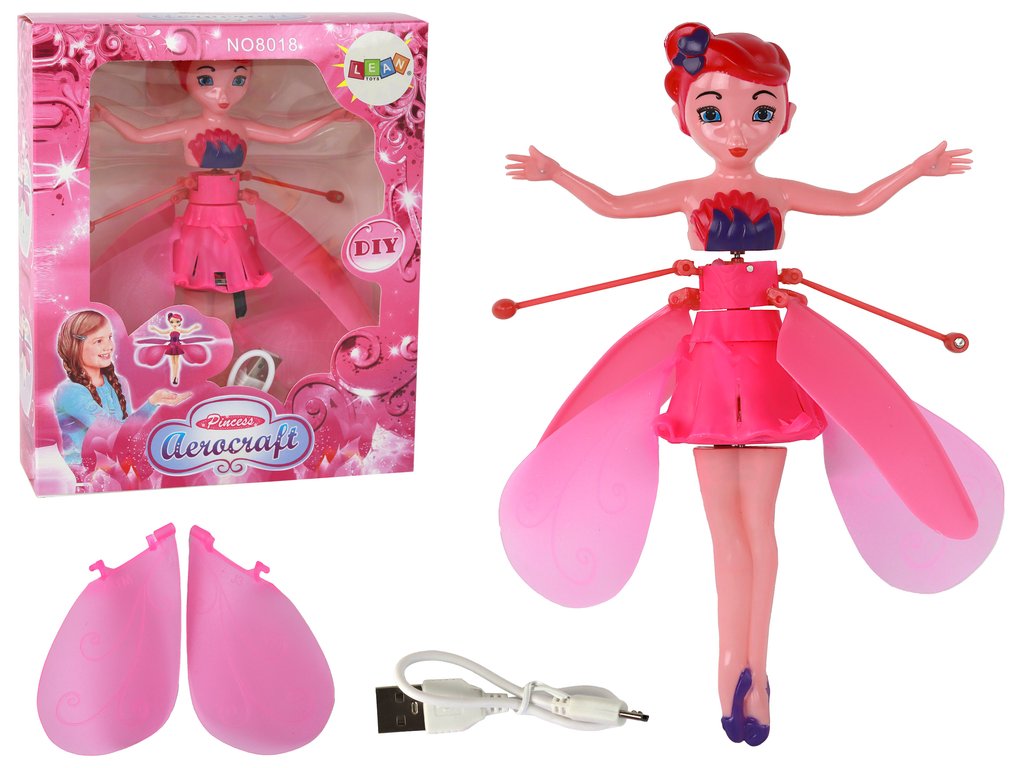 Čarobna leteča lutka vila roza upravljana z roko
