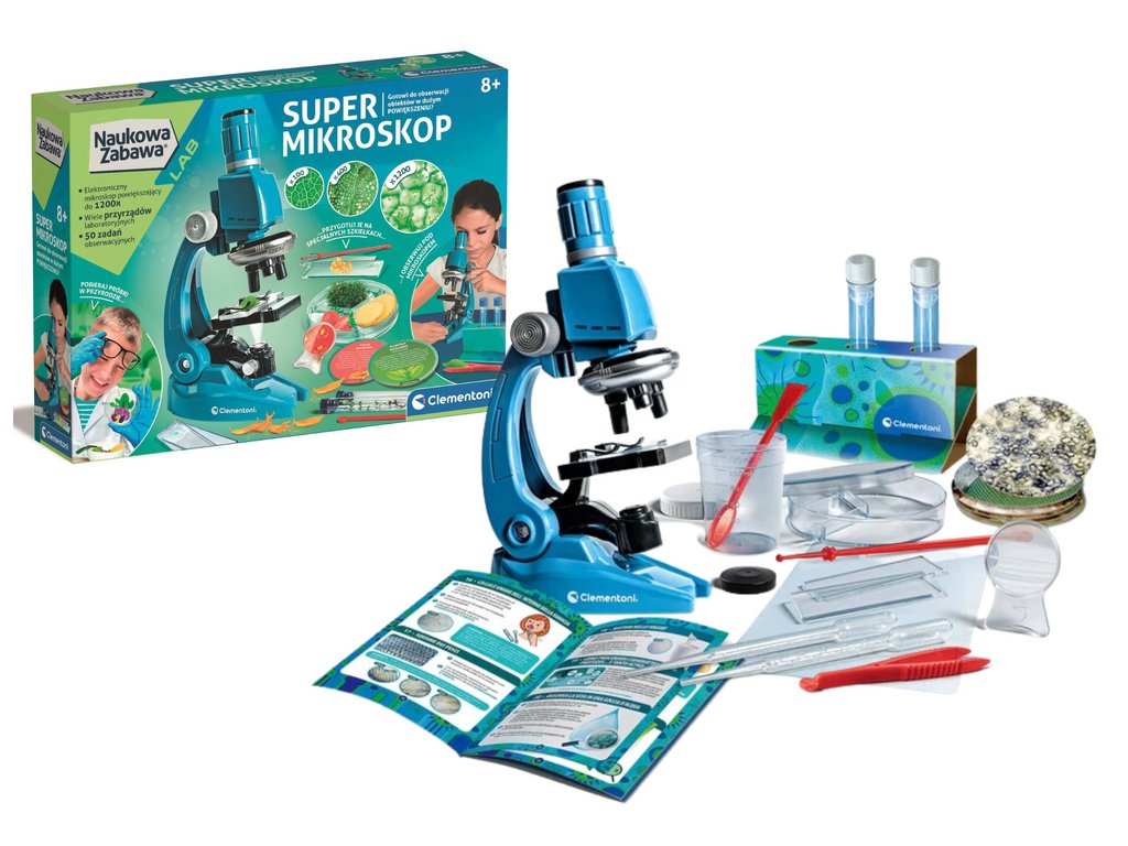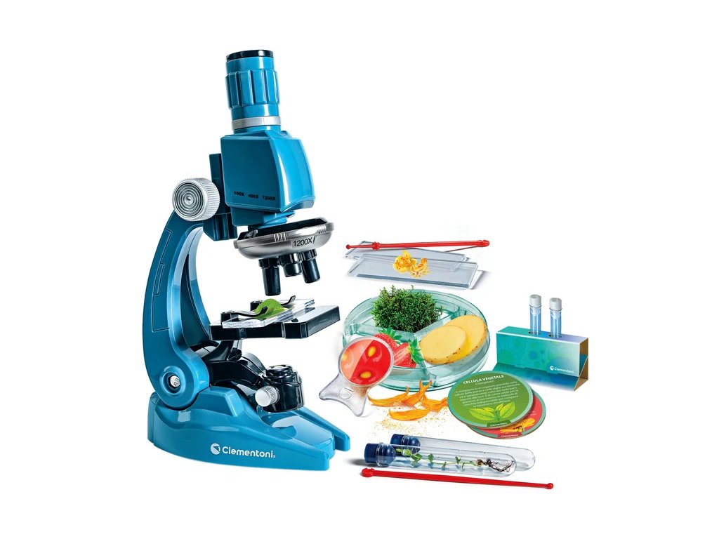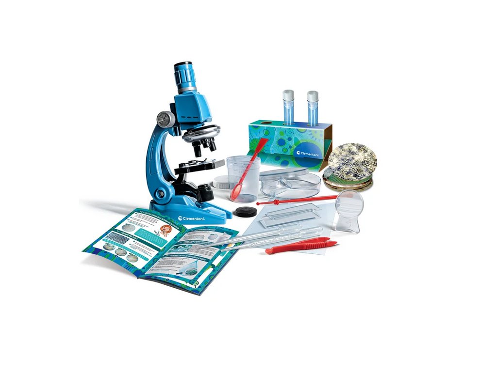 Odkrijte fascinanten svet mikrobiologije z izobraževalnim mikroskopom Clementoni! Ta najsodobnejši mikroskop je bil zasnovan posebej za mlade znanstvenike, ki si želijo raziskovati skrivnosti narave in razvijati svoje znanstvene interese. Zahvaljujoč večkratni povečavi omogoča opazovanje podrobnosti, ki s prostim očesom niso vidne – od strukture listov, preko majhnih mineralnih delcev do mikroskopskih organizmov.