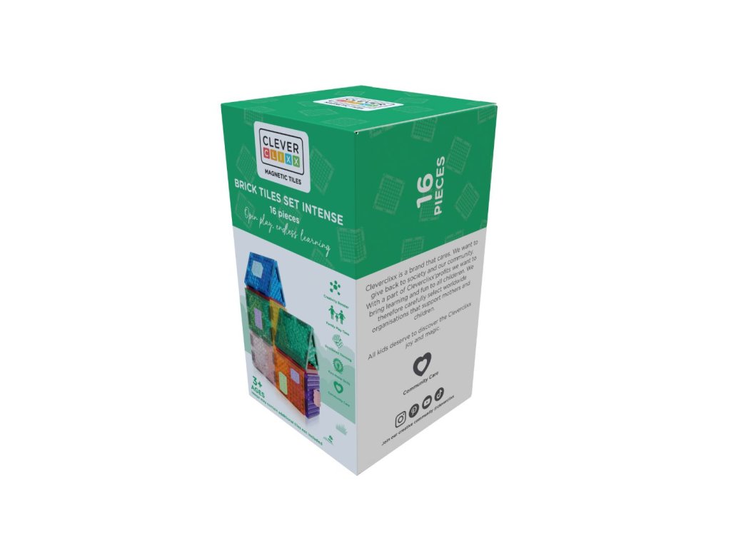 Pripravite se na povsem novo raven ustvarjalnosti! Komplet Cleverclixx Brick Tiles Intense vključuje 16 pisanih magnetnih ploščic z izboklinami, ki omogočajo povezovanje kock LEGO® in LEGO DUPLO® . Vaš otrok lahko preprosto sestavlja svoje najljubše sestave za gradnjo in do maksimuma razširi svoje igralne možnosti.