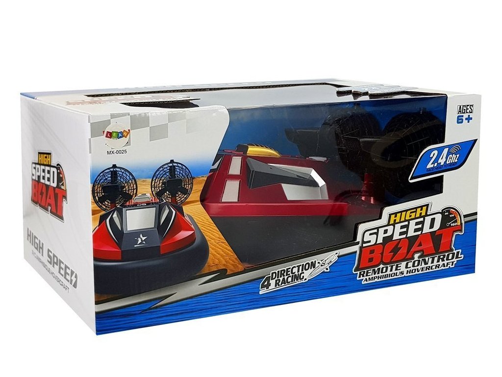 Čoln na daljinsko vodenje R/C rdeča uporablja oddajnik na frekvenci 2,4 GHz, kar znatno poveča doseg upravljanja - vse do 50 metrov. Največja hitrost 20 km/h.