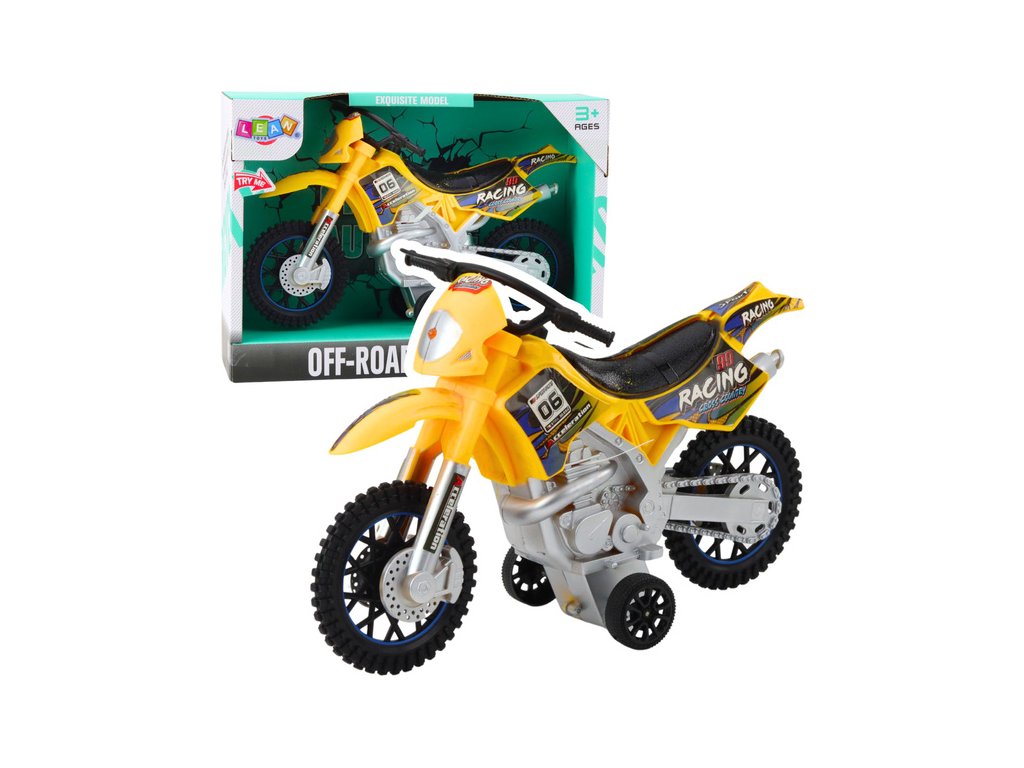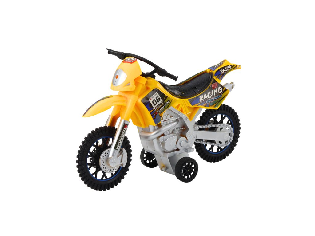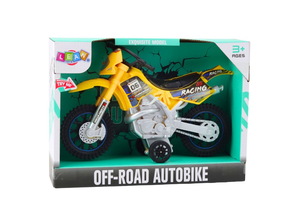 Ta crossbike je odlična izbira za male ljubitelje terenske vožnje, ki sanjajo o lastnem dirkalnem motorju. Ta igrača je bila zasnovana z mislijo na maksimalen realizem in dinamično izkušnjo. Zahvaljujoč robustni konstrukciji in športnemu, drznemu dizajnu, ki ga navdihujejo pravi terenski motorji, se bo vaš otrok takoj počutil kot majhen reli dirkač.