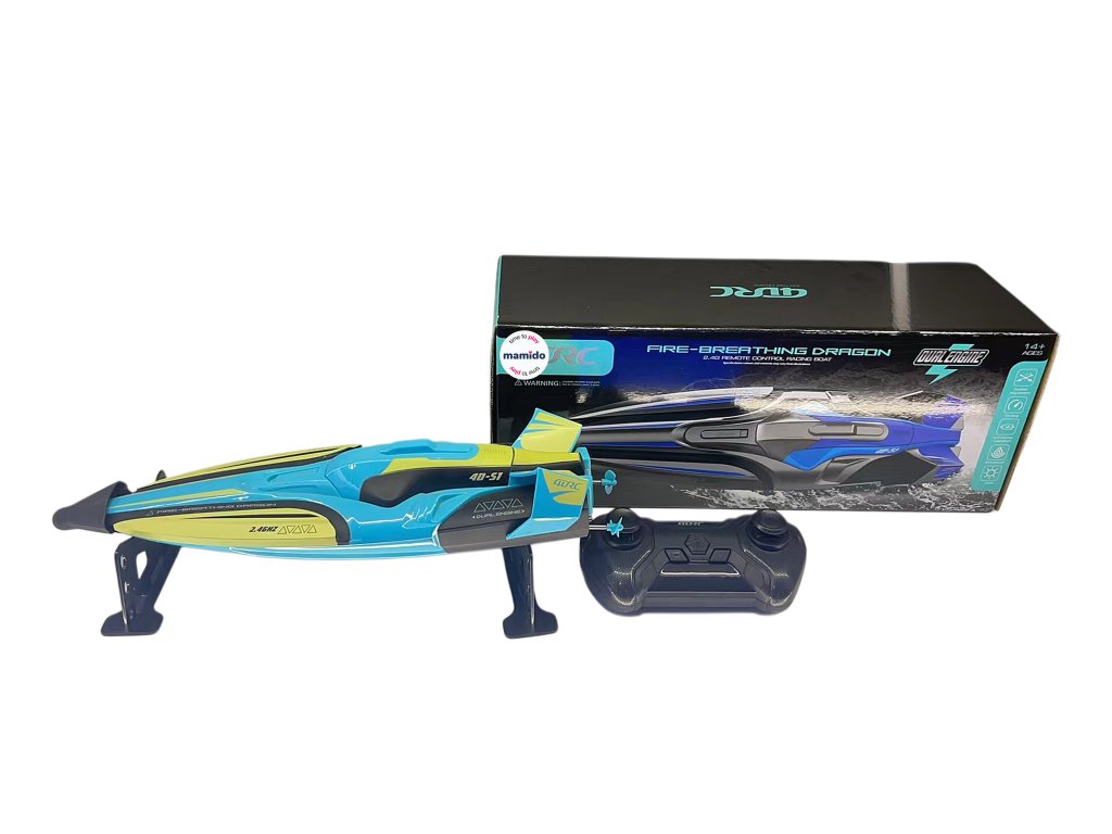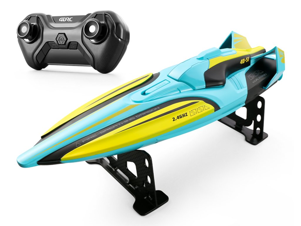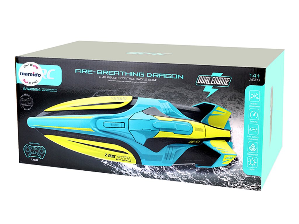Obvladajte vodno gladino z enim najhitrejših RC čolnov v svoji kategoriji. RC čoln dosega hitrost do 30 km/h in se zaradi zmogljivega dvojnega motorja spopade tudi z zahtevnejšimi vodnimi pogoji.