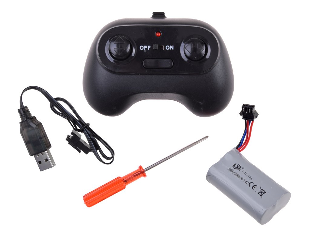 - Kompletní sada – v krabici najdete: žraloka, dálkové ovládání a USB kabel pro nabíjení.