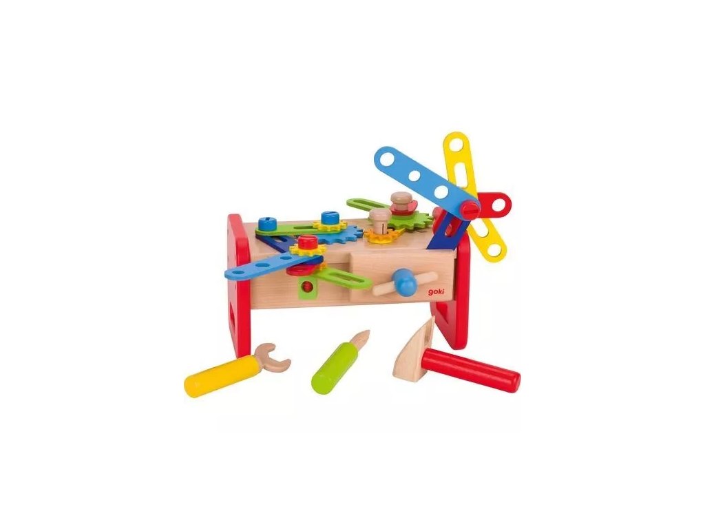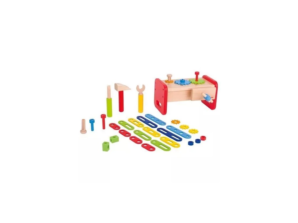 S to delovno mizo bodo vaši mali pomočniki in pomočnice uživali v privijanju, zabijanju in obračanju. Igra spodbuja razvoj fine motorike, koordinacije oko-roka, potrpežljivosti in koncentracije ter prispeva k pridobivanju praktičnih veščin.