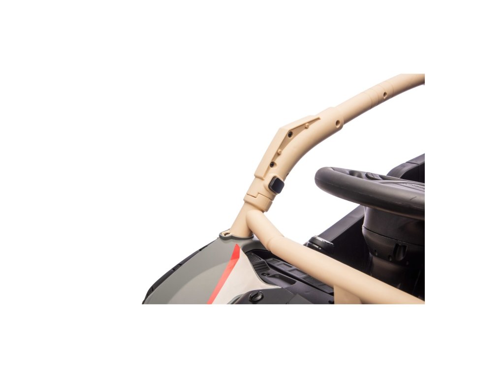 Stilsko otroško vozilo Buggy Kawasaki TERYX KRX1000 je idealna izbira za male voznike, ki obožujejo vožnjo po terenu in gladkih površinah. Zmogljiv 24V sistem s štirimi motorji (2× 20W spredaj, 2× 45W zadaj) bo zagotovil dovolj moči tudi za neraven teren. Vozilo je opremljeno mehkimi kolesi iz EVA, udobnim usnjenim sedežem in varnostnimi pasovi. Zahvaljujoč daljinskemu upravljalniku s funkcijo STOP imajo starši vozilo vedno pod nadzorom. Oprema vključuje LED luči, avdio plošči z Bluetooth, MP3, USB vhodom in drugimi funkcijami.