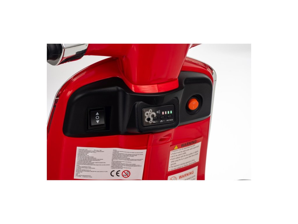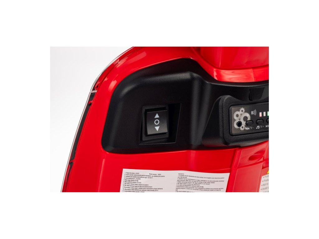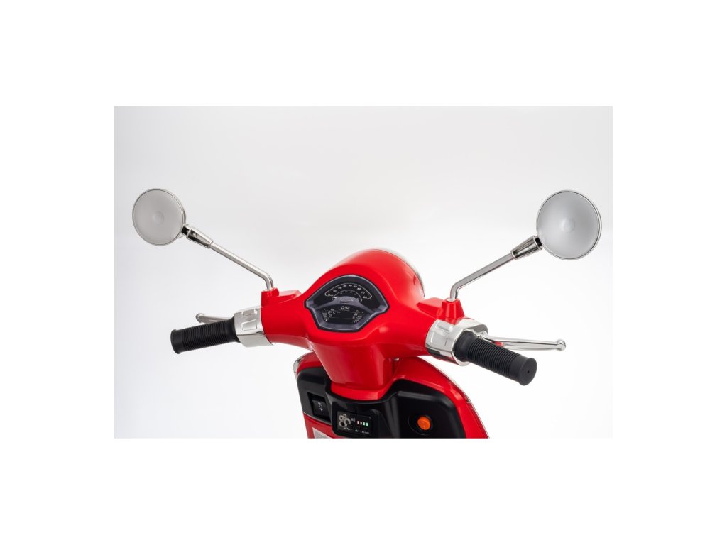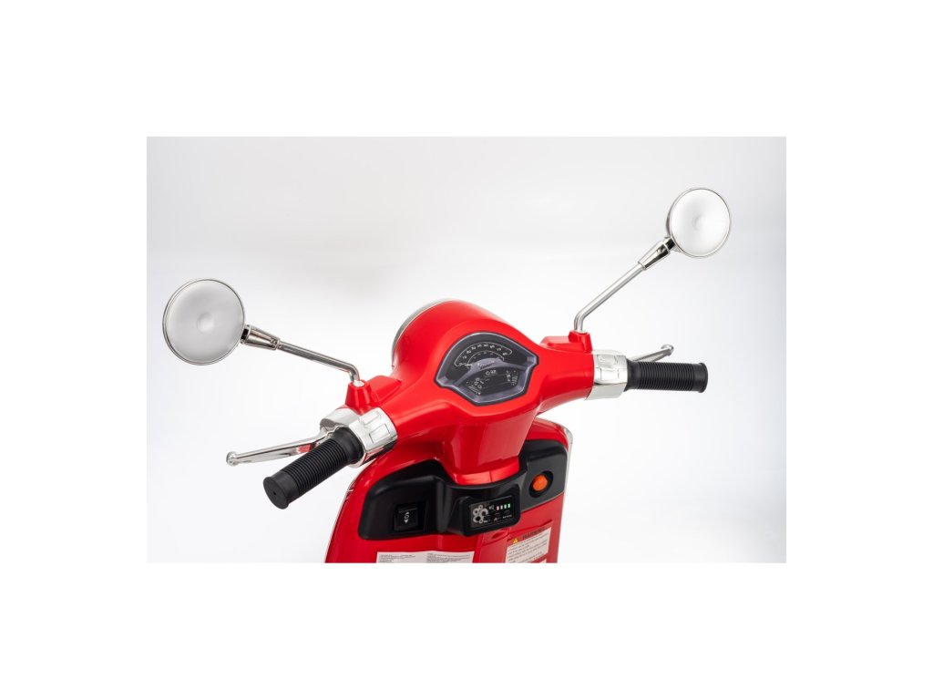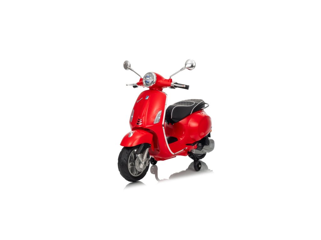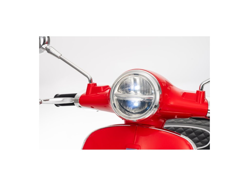 Kdo by neznal skútr značky Vespa? Tento legendární skútr může řídit i Vaše dítě, a to díky tomuto licencovanému modelu. Skútr má kvalitní sedadlo potažené měkkou ekologickou kůží a měkká kola EVA. K tomu všemu krásné přední a zadní LED světla a dokáže přehrávat MP3 soubory, takže si dítě může za jízdy poslechnout svou oblíbenou písničku a zároveň zdokonalovat své řidičské schopnosti.