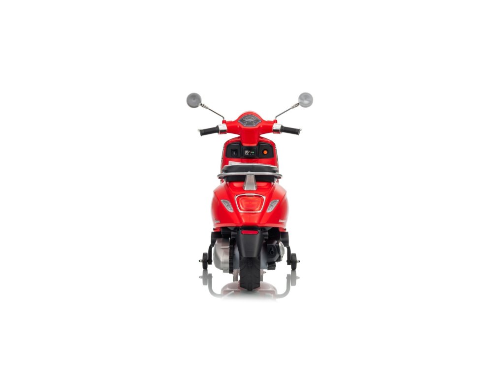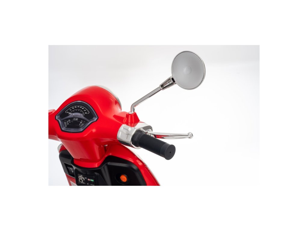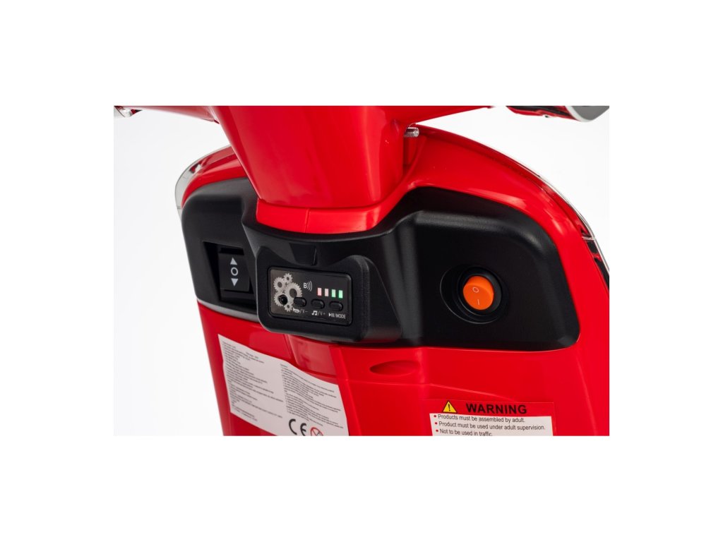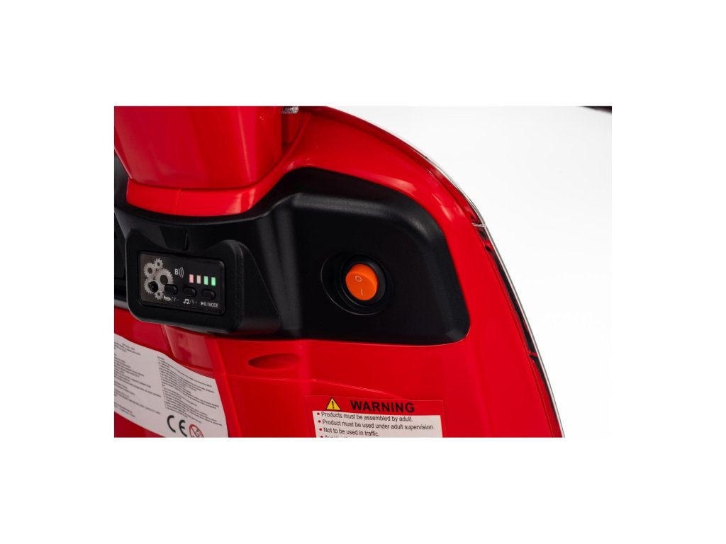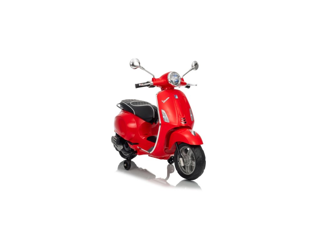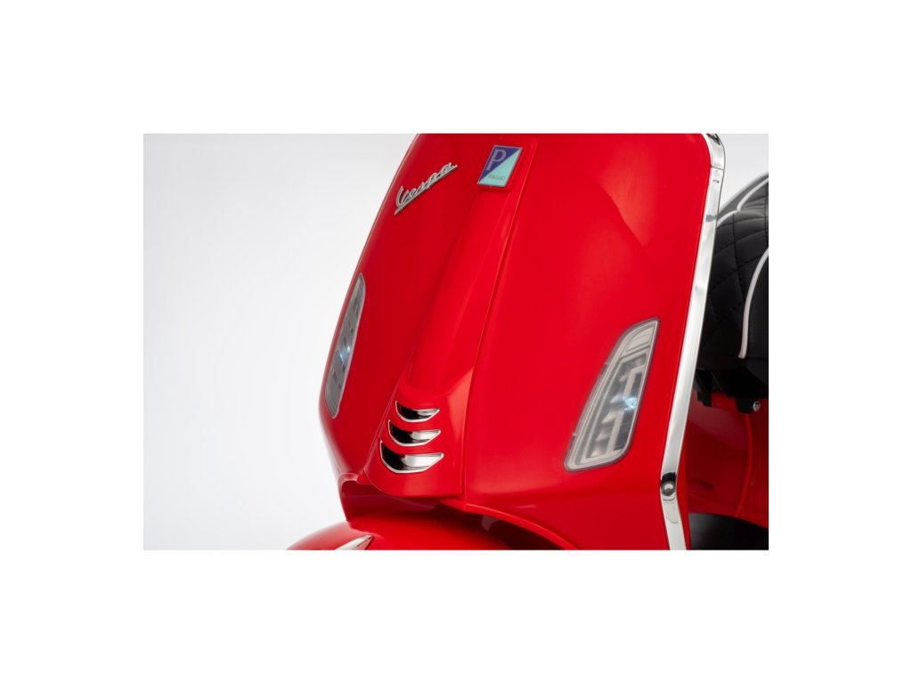 Kdo by neznal skútr značky Vespa? Tento legendární skútr může řídit i Vaše dítě, a to díky tomuto licencovanému modelu. Skútr má kvalitní sedadlo potažené měkkou ekologickou kůží a měkká kola EVA. K tomu všemu krásné přední a zadní LED světla a dokáže přehrávat MP3 soubory, takže si dítě může za jízdy poslechnout svou oblíbenou písničku a zároveň zdokonalovat své řidičské schopnosti.