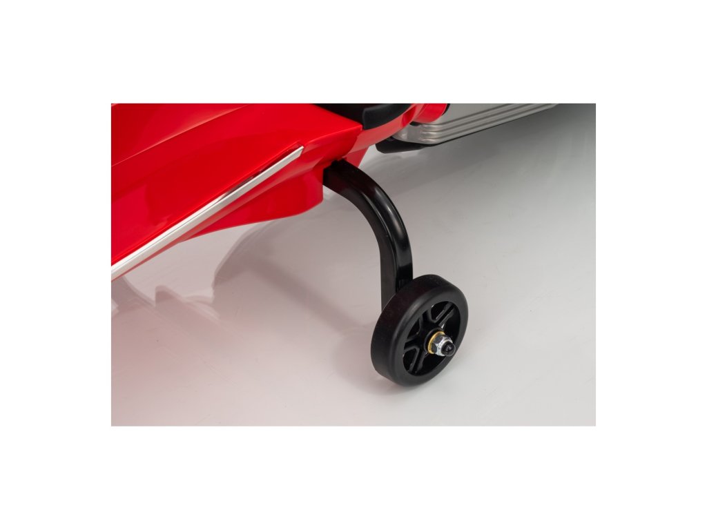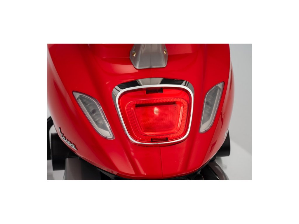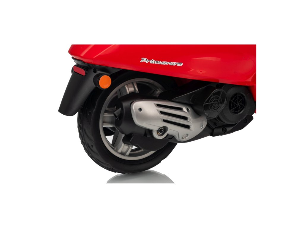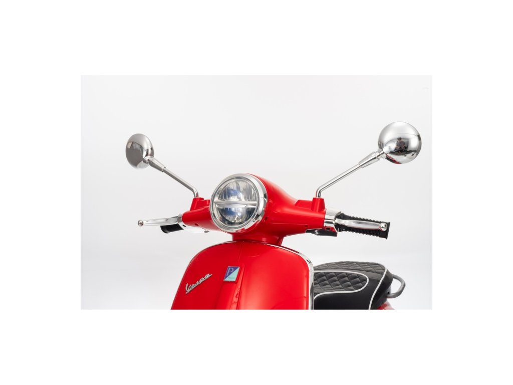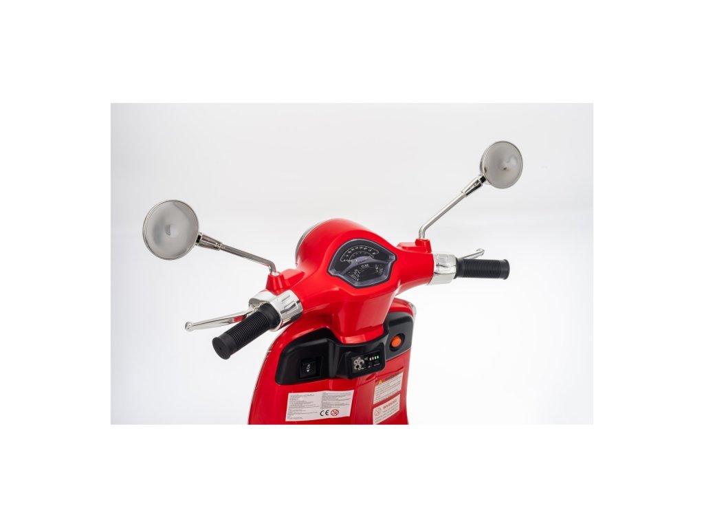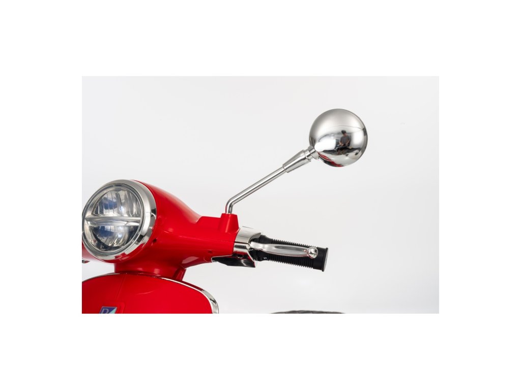 Kdo by neznal skútr značky Vespa? Tento legendární skútr může řídit i Vaše dítě, a to díky tomuto licencovanému modelu. Skútr má kvalitní sedadlo potažené měkkou ekologickou kůží a měkká kola EVA. K tomu všemu krásné přední a zadní LED světla a dokáže přehrávat MP3 soubory, takže si dítě může za jízdy poslechnout svou oblíbenou písničku a zároveň zdokonalovat své řidičské schopnosti.
