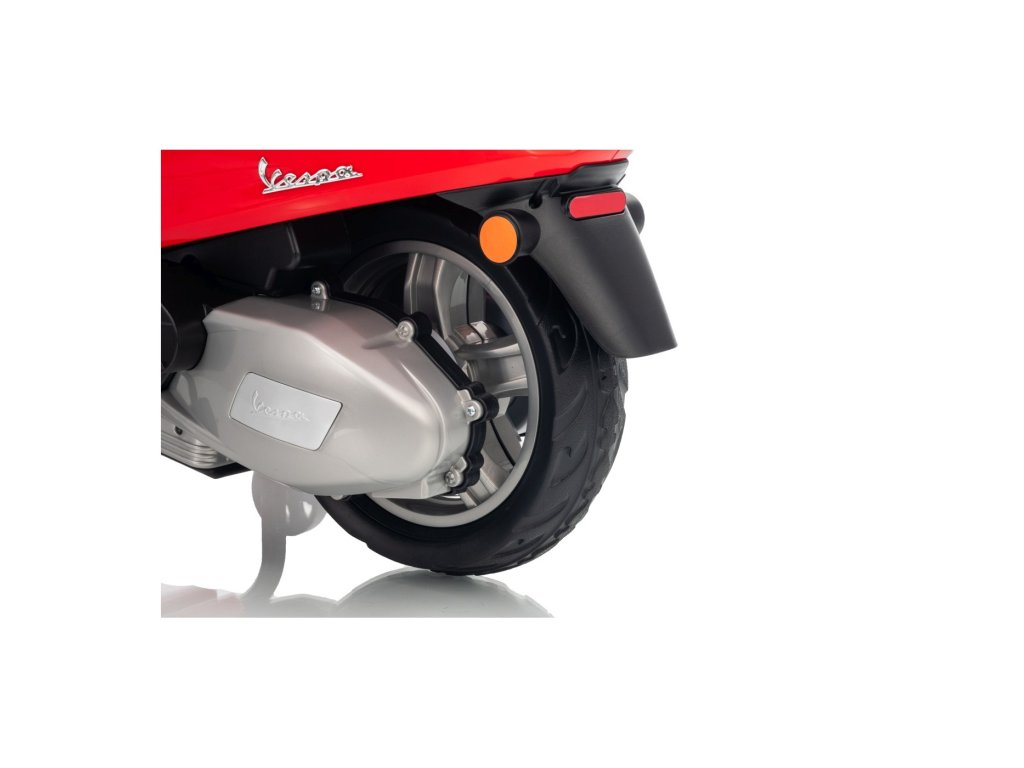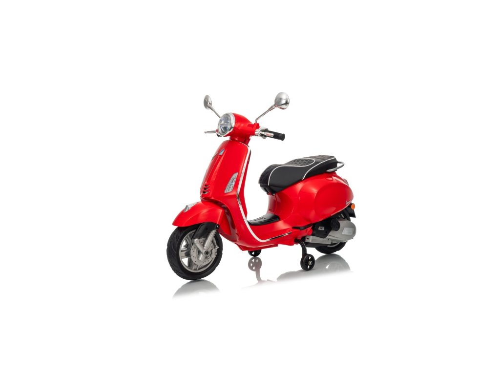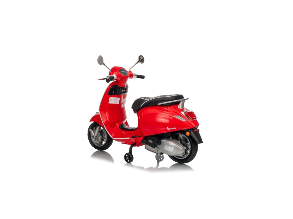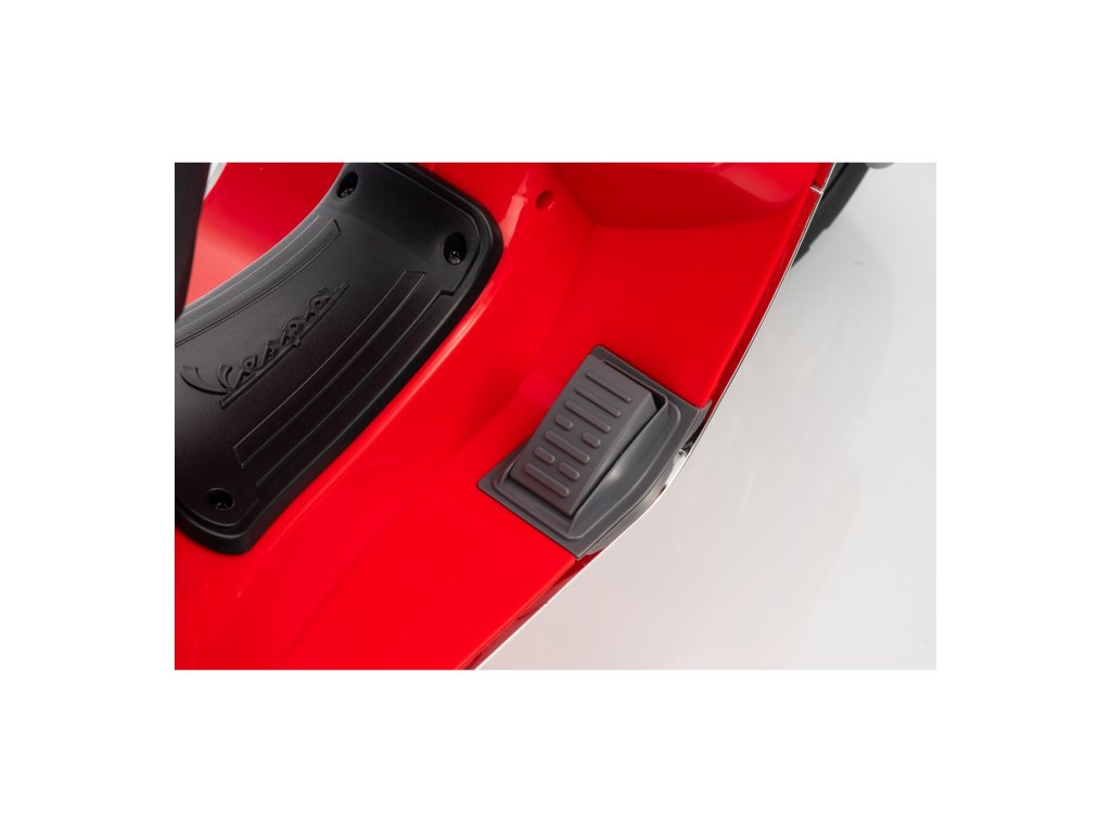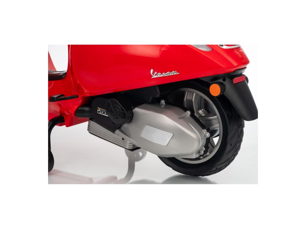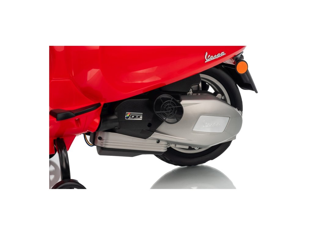 Vespa vydrží 1 hodinu senzační jízdy. Na bezpečí dítěte dbají postranní kolečka a automatická brzda, která zastaví, když dítě spustí nohu z plynového pedálu. Dětský skútr je vhodný pro děti od 3 let.