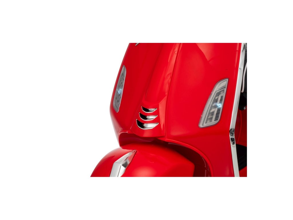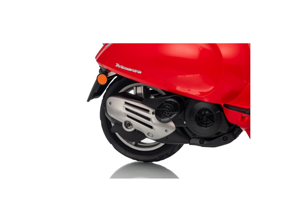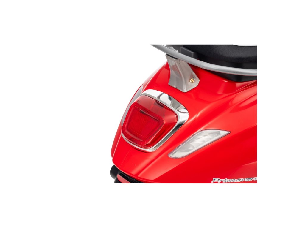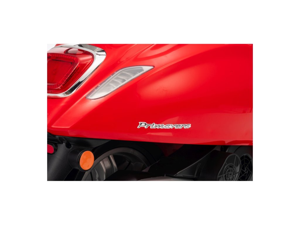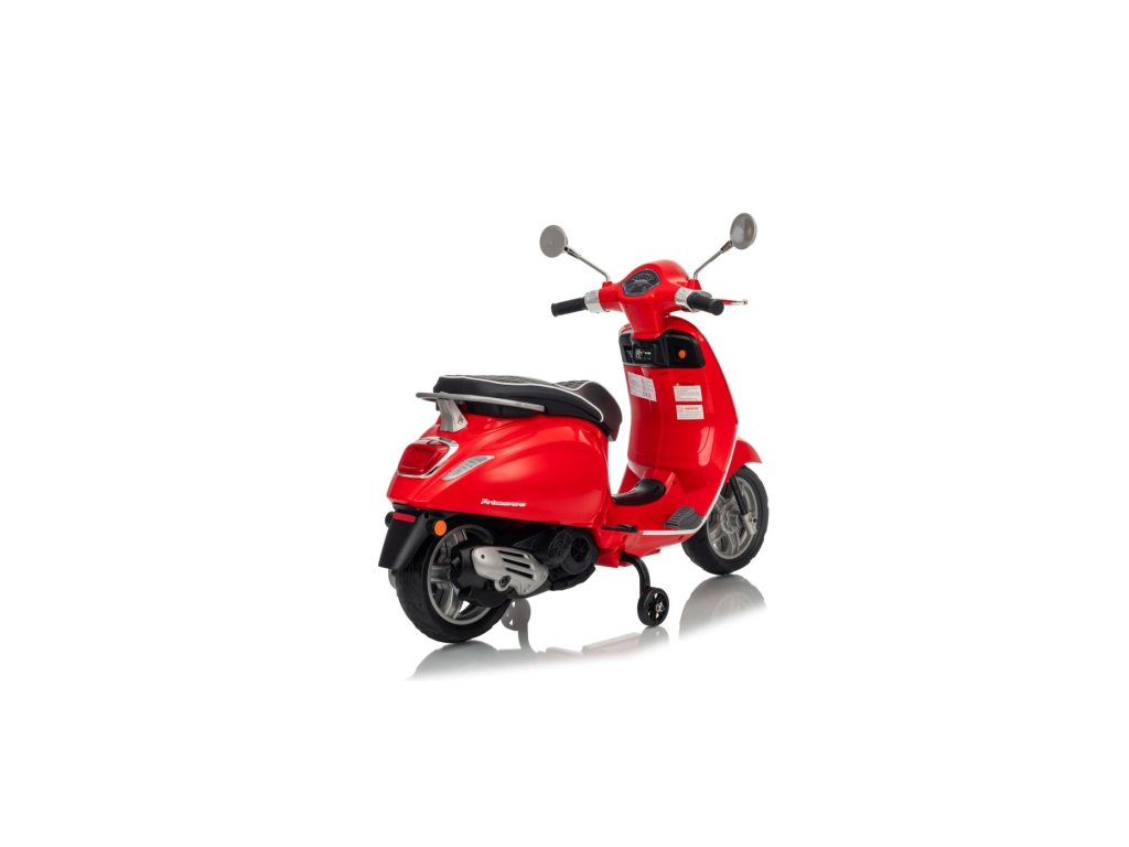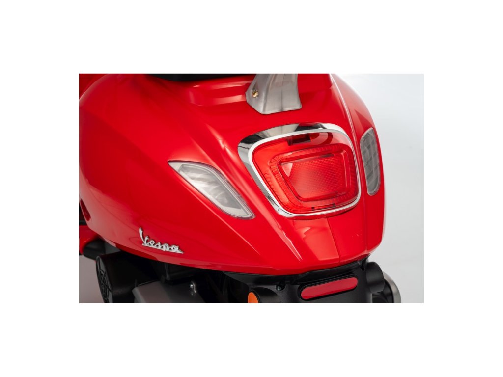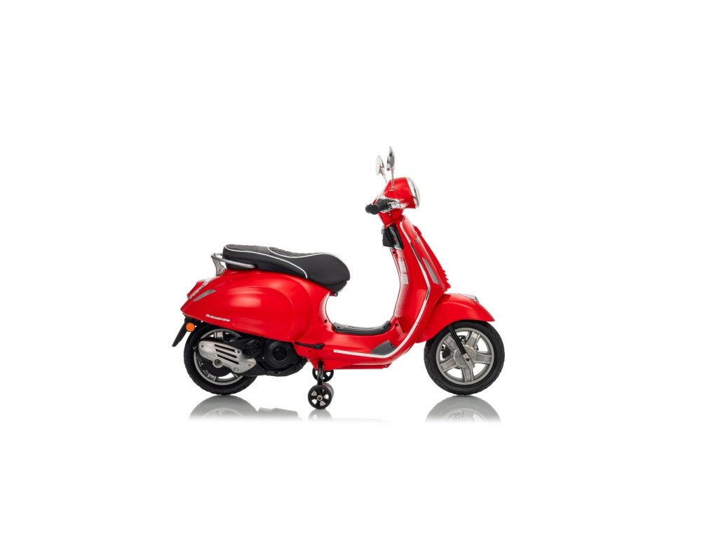 Vespa vydrží 1 hodinu senzační jízdy. Na bezpečí dítěte dbají postranní kolečka a automatická brzda, která zastaví, když dítě spustí nohu z plynového pedálu. Dětský skútr je vhodný pro děti od 3 let.