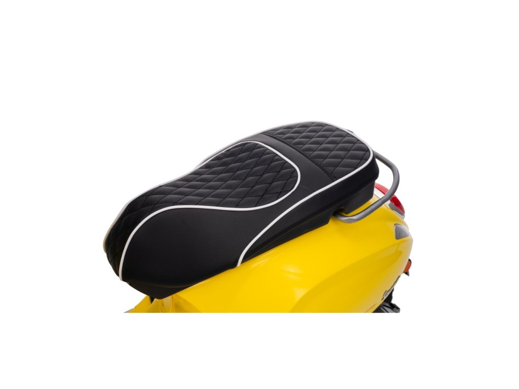 Kdo by neznal skútr značky Vespa? Tento legendární skútr může řídit i Vaše dítě, a to díky tomuto licencovanému modelu. Skútr má kvalitní sedadlo potažené měkkou ekologickou kůží a měkká kola EVA. K tomu všemu krásné přední a zadní LED světla a dokáže přehrávat MP3 soubory, takže si dítě může za jízdy poslechnout svou oblíbenou písničku a zároveň zdokonalovat své řidičské schopnosti.