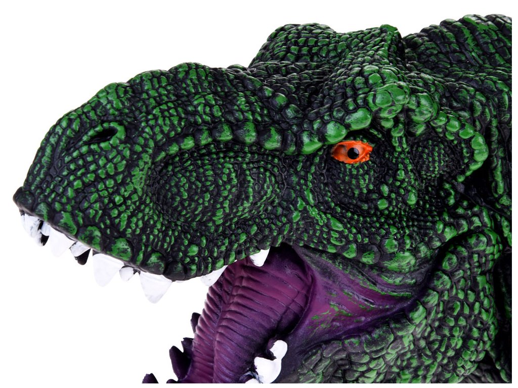 Dinozaur T-REX je mogočen mesojedec, ki bo požrl vse, kar mu pride na pot, zdaj pa lahko z vašo pomočjo poje na primer gumijaste medvedke ali travo z vašega vrta. Glava Tyrannosaurusa je realistično izdelana gumijasta rokavica, ki jo preprosto nadenete na roko, da lahko igrate prizore iz življenja T-REXA. Igrača je narejena iz gume, ima čudovito temno zeleno barvo in je skrbno dodelana z veliko pozornostjo na vse podrobnosti, kar zagotavlja fantastično zabavo, igranje različnih scenarijev, igre na prostem in vse, kar si vaša domišljija želi. Igranje strašnega Tyrannosaura bo mega vznemirljivo.