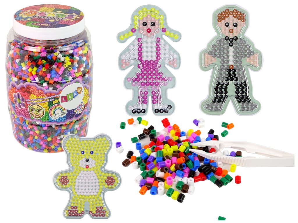 Set vsebuje veliko plastičnih in barvitih perlic, mali arhitekt bo ustvaril želeni vzorec in hkrati razvijal svojo ročno spretnost in preciznost. Iz perlic je mogoče oblikovati različne oblike in figure.